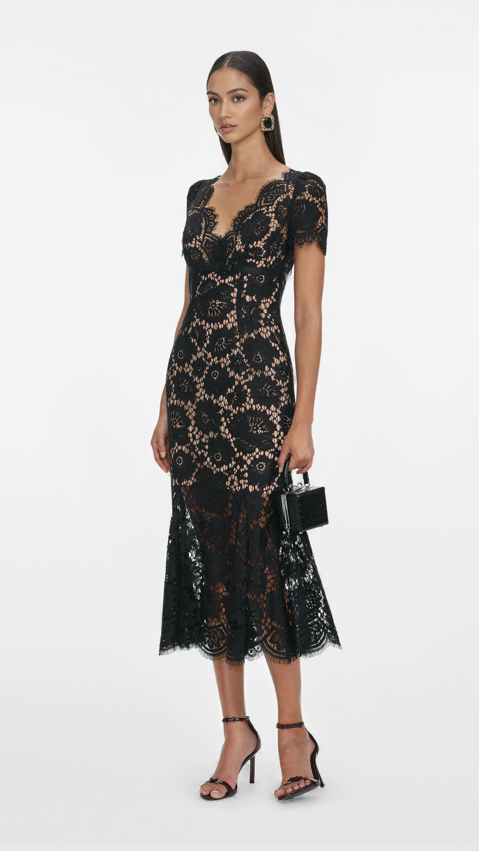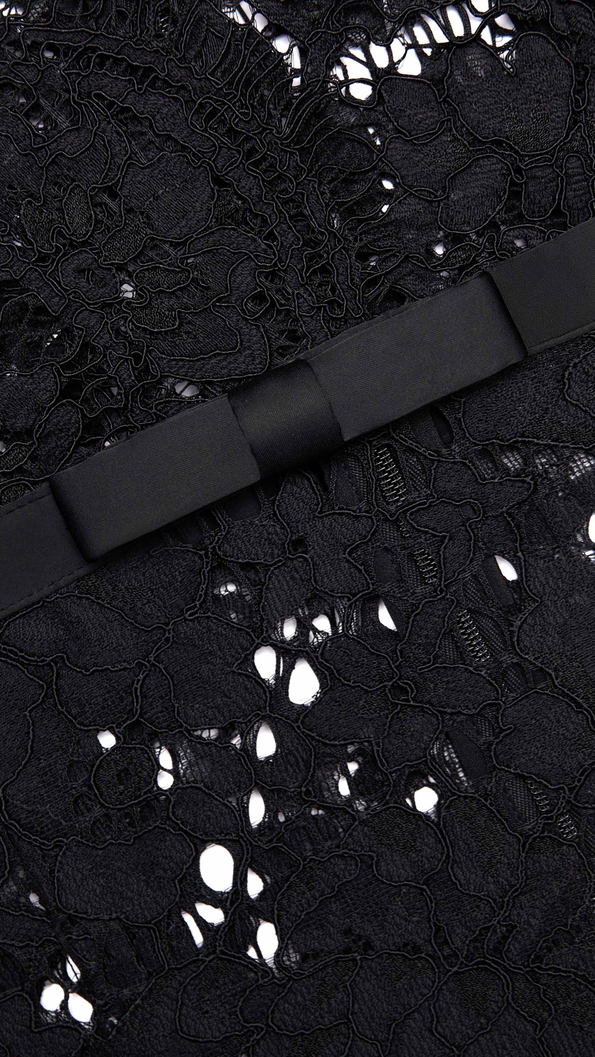 ASHLEY FLORAL LACE HOLLOW MIDI DRESS IN BLACK