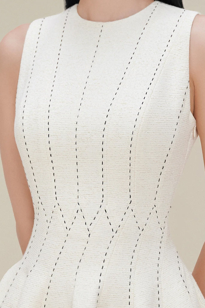 ASTRID SLEEVELESS PLEATED MIDI DRESS IN BEIGE