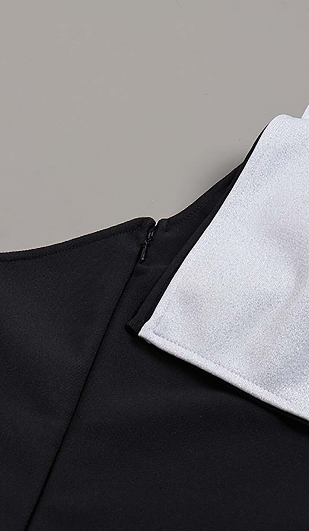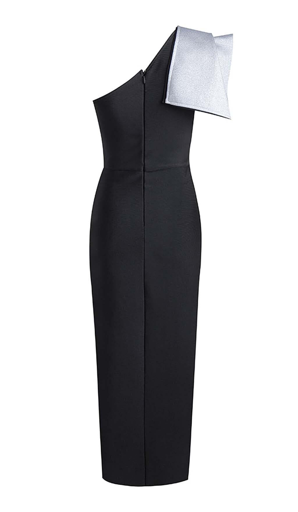 ASYMMETRIC DIAMOND HIGH-LOW DRESS IN BLACK
