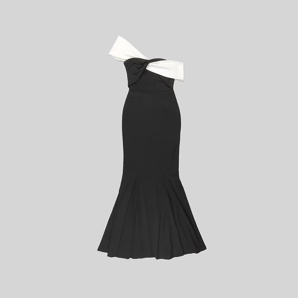 ASYMMETRIC OFF SHOULDER MAXI DRESS IN BLACK