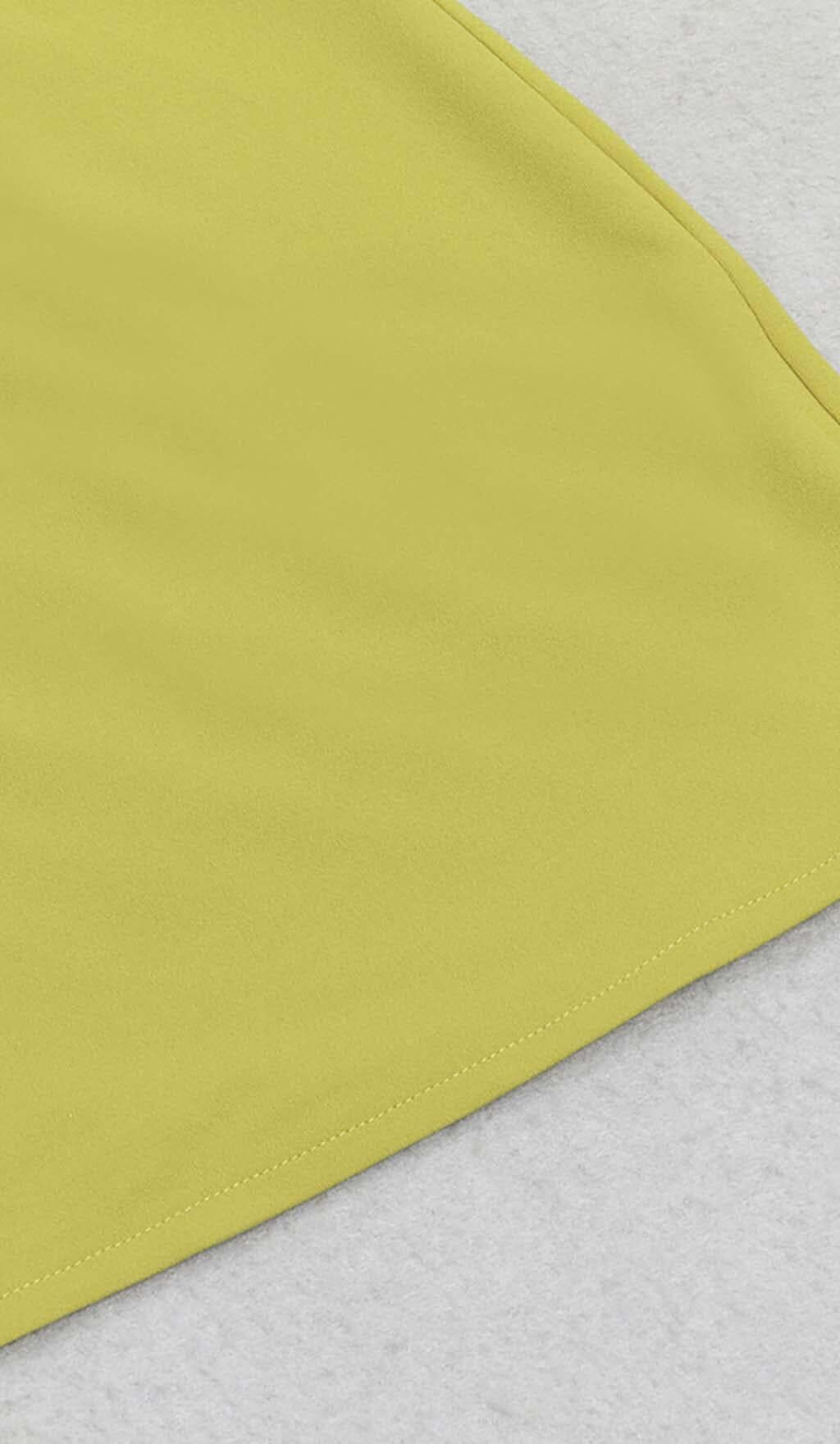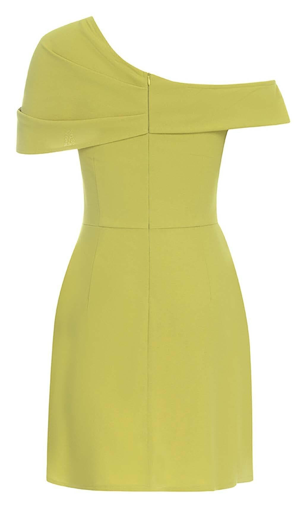 Brighten up the night in this sunshine green mini dress with an asymmetrical ruffle neckline. The bodycon fit highlights your best assets while the flirty ruffled accents add feminine flair. Pair with barely-there sandals to showcase legs for days. You're sure to turn heads in this bold cocktail dress!