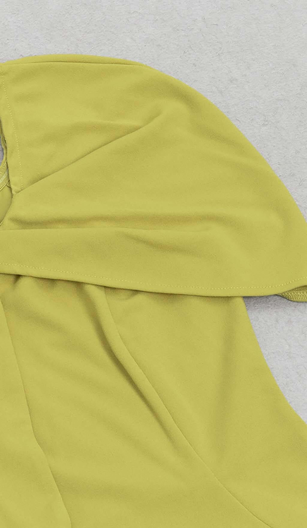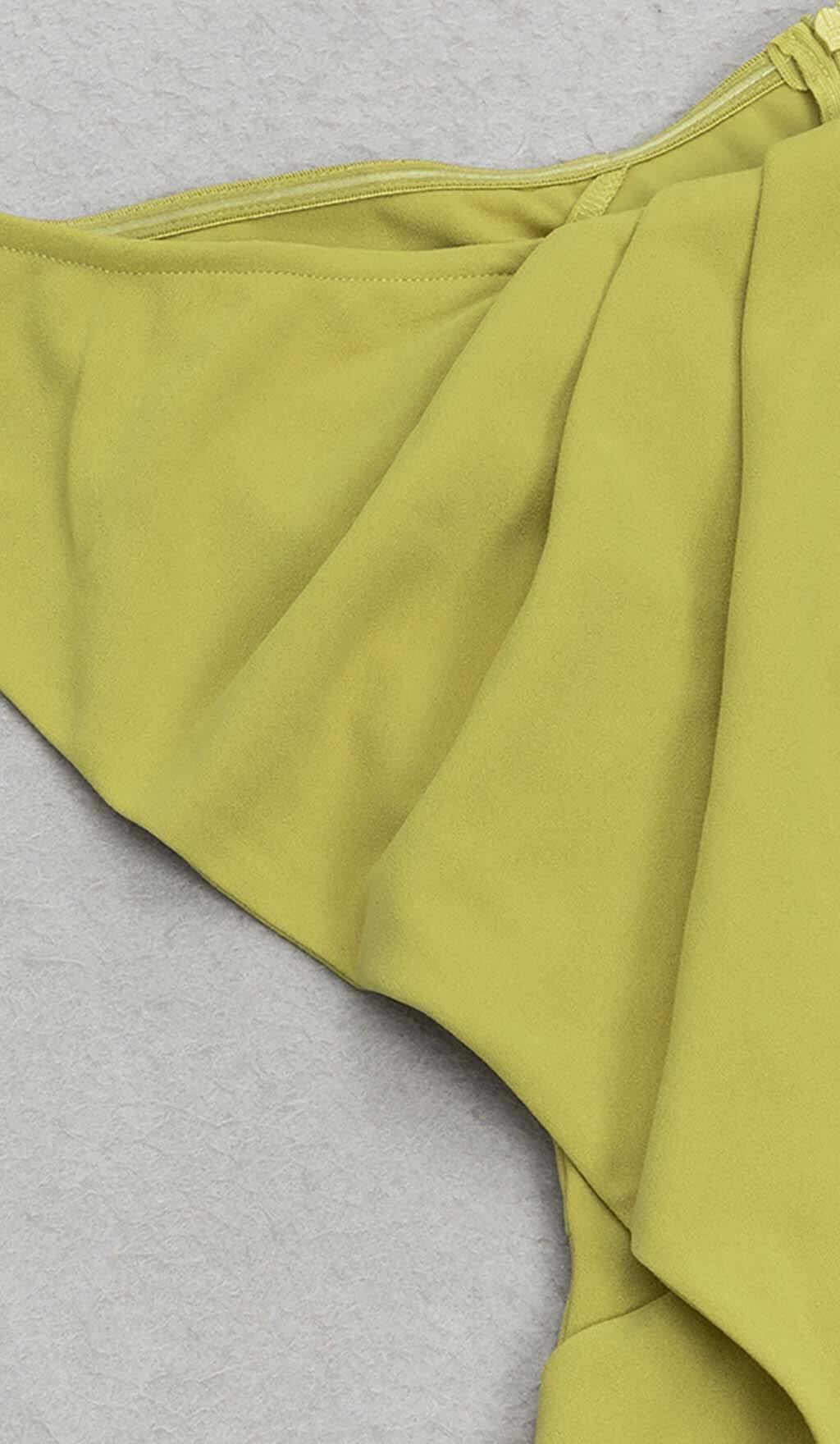 ASYMMETRICAL NECK RUFFLE MINI DRESS IN GREEN