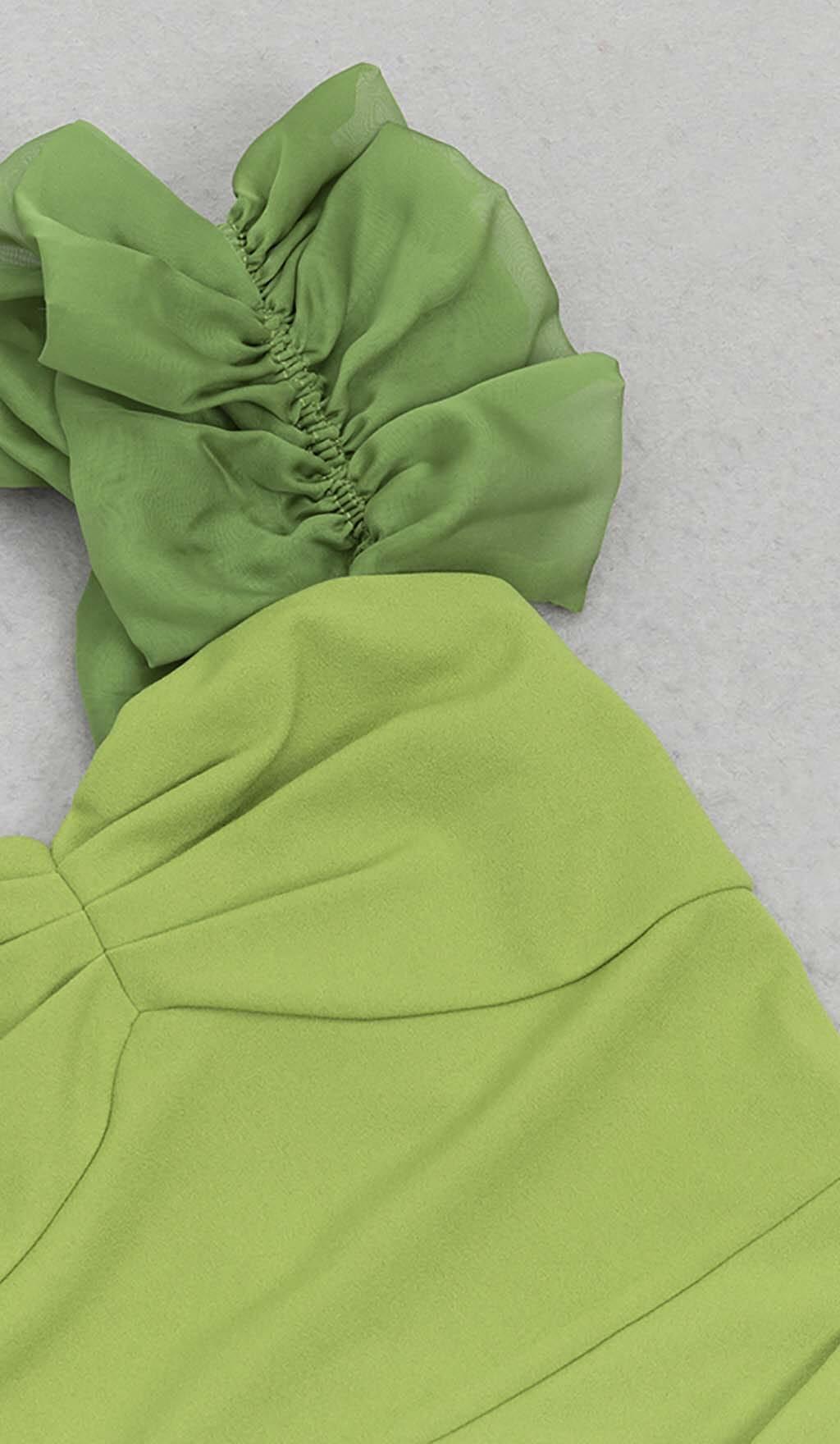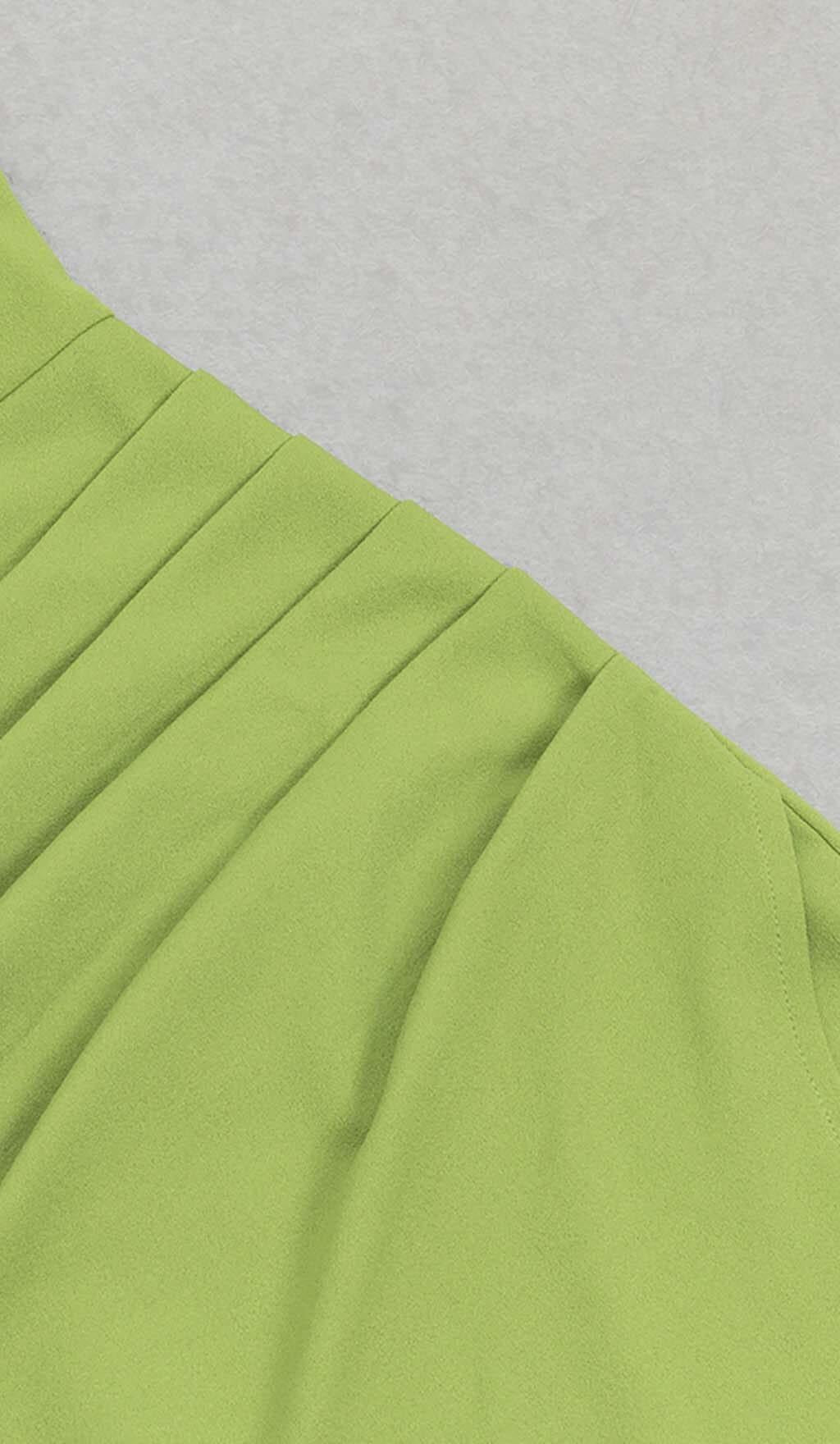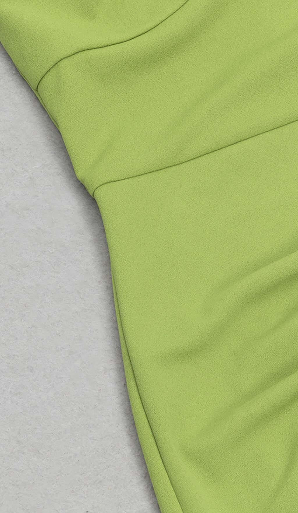 ASYMMETRICAL NECK SPLIT THIGH MIDI DRESS IN GREEN