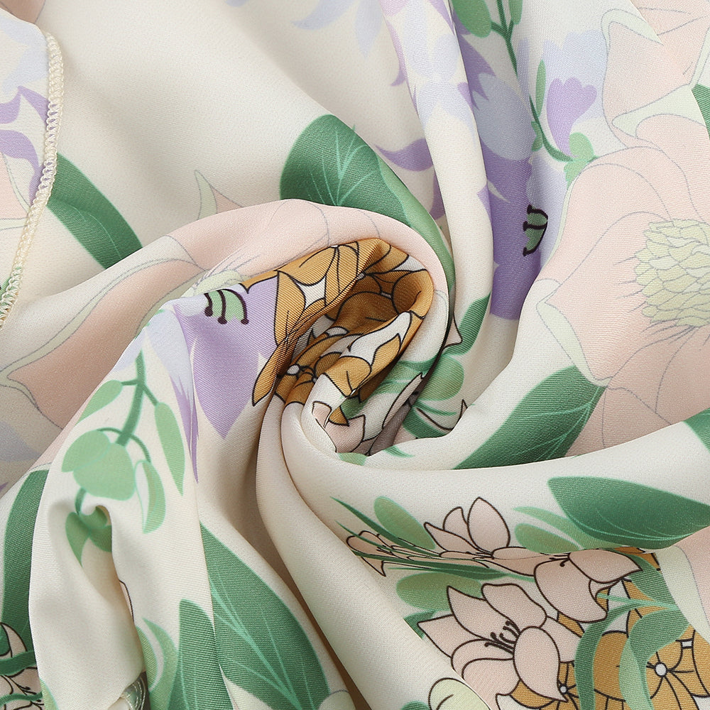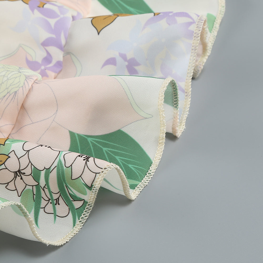 This strappy printed maxi dress, with its light tones and fresh botanical prints, exudes a gentle and romantic charm. The frilly design adds a lively and soft touch. It's perfect for garden weddings, blending seamlessly with the beautiful scenery as a guest's outfit; ideal for outdoor afternoon tea, creating a fully elegant atmosphere; great for spring art exhibitions, demonstrating a literary and artistic taste; suitable for strolling in resorts, matching the leisurely vacation time; and it can make you the center of attention at small - scale courtyard parties.