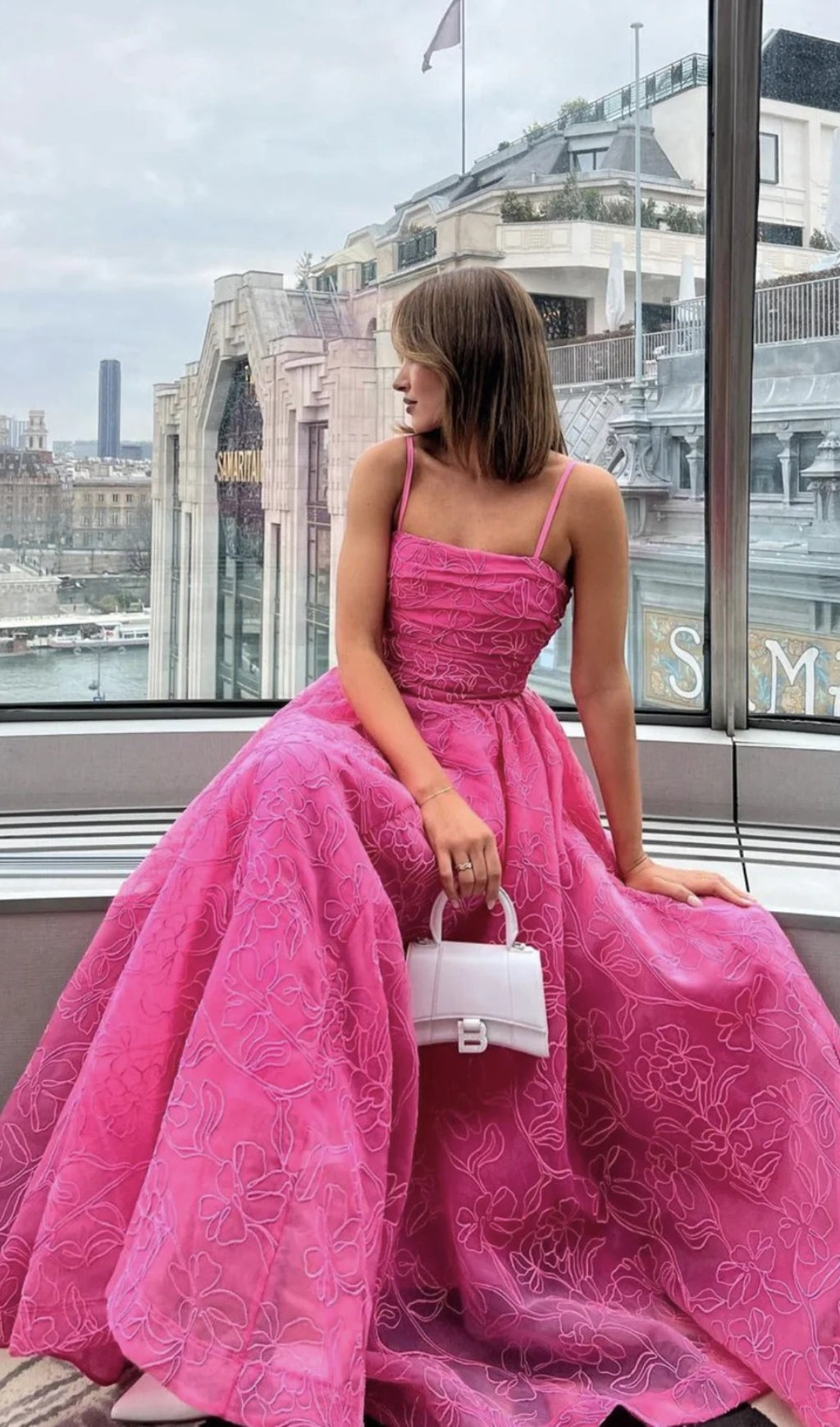 EMBROIDER MAXI DRESS IN HOT PINK
