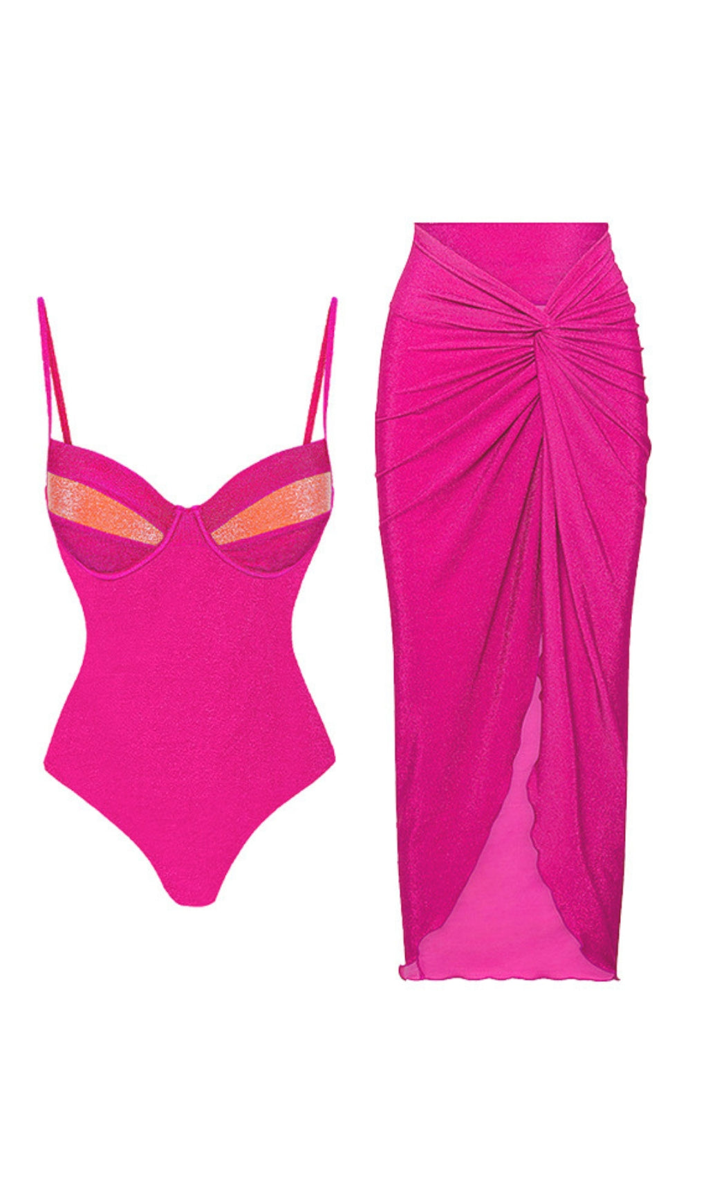 Get ready to slay at the beach with our ATARANGI Pink Swimsuit and Sarong set! This stylish and playful one-piece offers a flattering fit and comes with a matching sarong for extra coverage. Perfect for a day of fun in the sun! (Sunglasses and sunscreen not included).