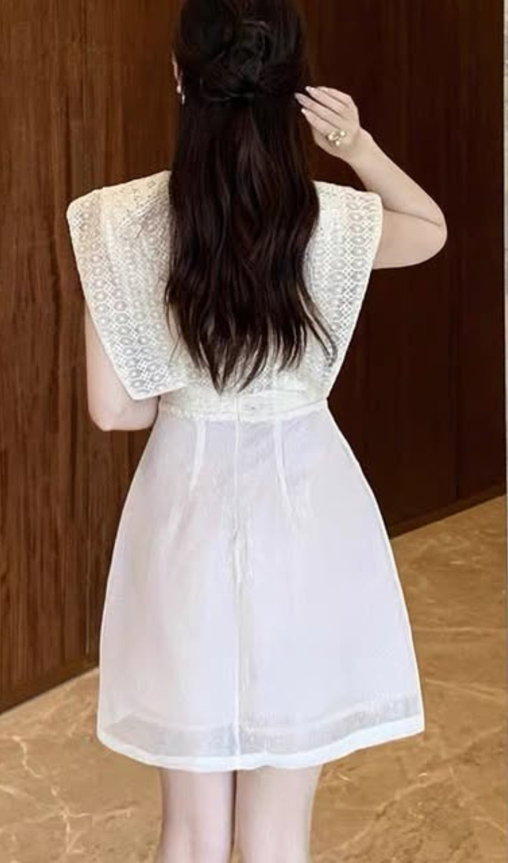 EMBROIDERY CUTOUT MINI DRESS IN APRICOT