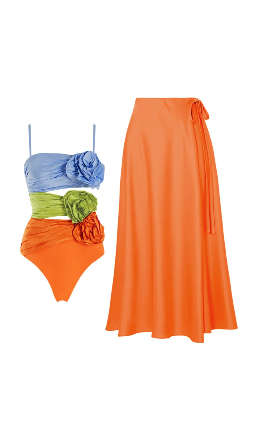 AURÈLE ORANGE 3D FLOWER SWIMSUIT AND SKIRT