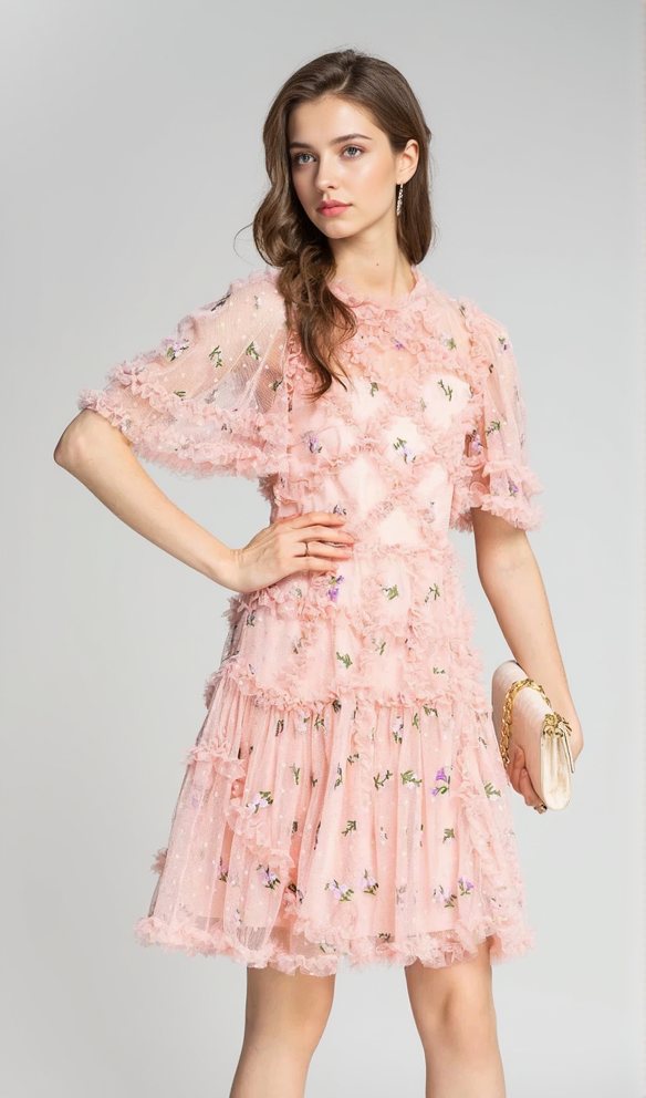 AURORA RUFFLES TULLE MINI DRESS IN PINK
