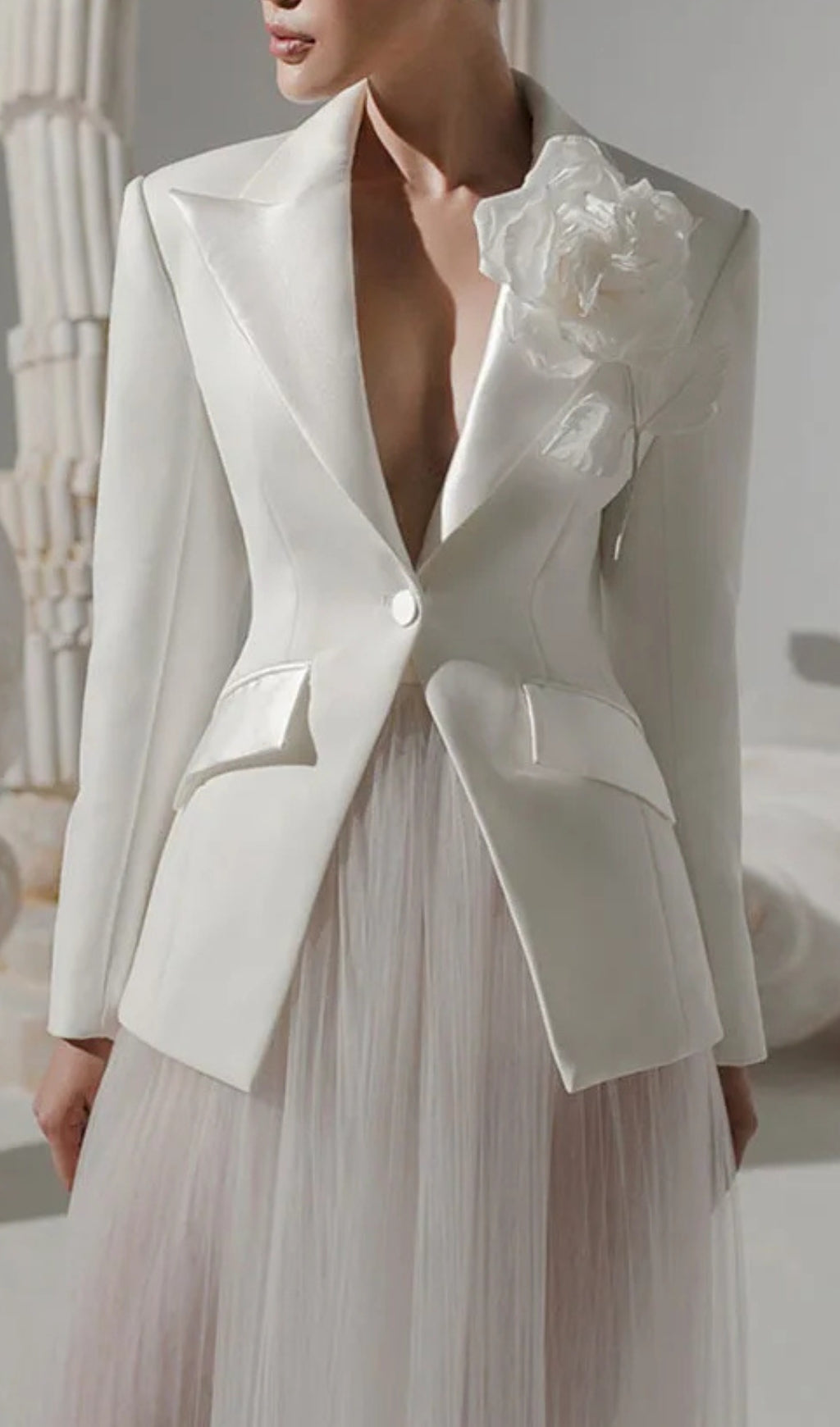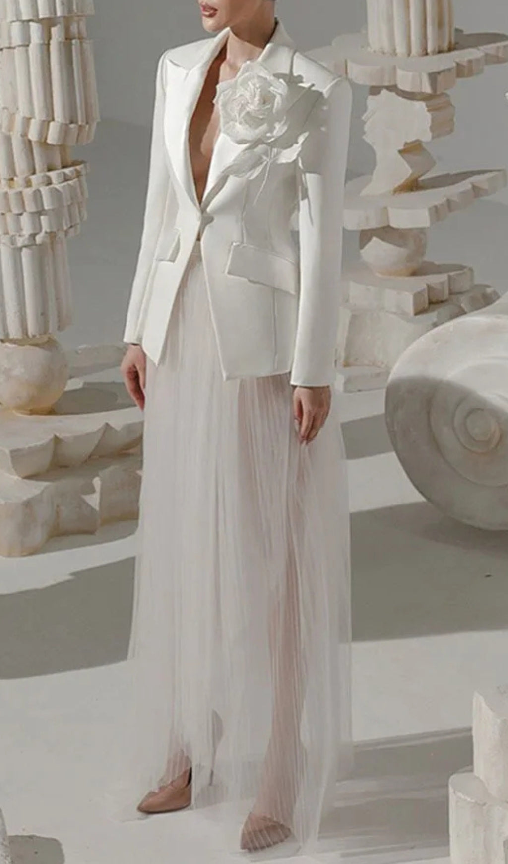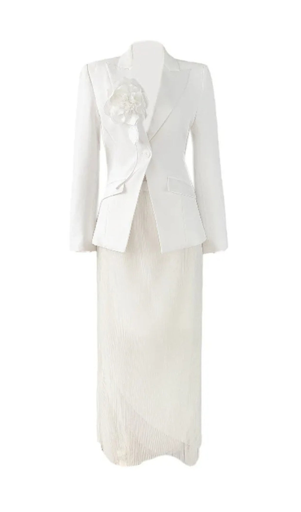 This 3D Flower Two Piece Set is a masterpiece of design, blending functionality with high-fashion appeal. Whether you're attending a formal event or looking for a standout ensemble, this set promises to make a memorable impression with its blend of elegance and unique detailing.