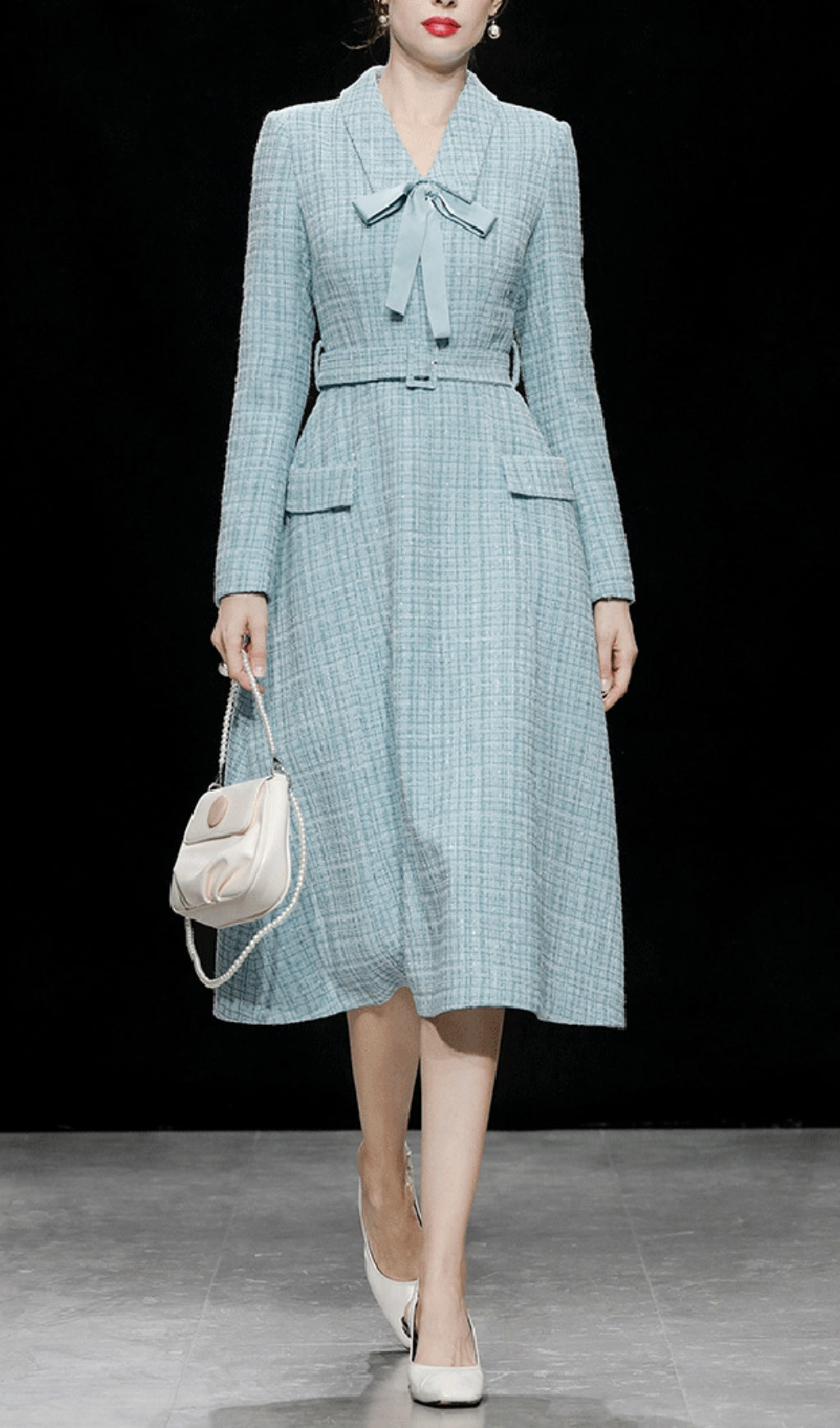 AYU BELT TWEED MIDI DRESS