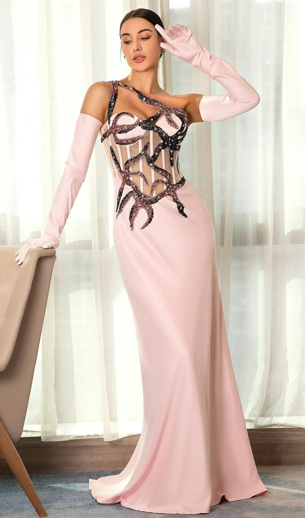 BABIS EMBROIDERED CORSET MERMAID EVENING DRESS WITH GLOVES