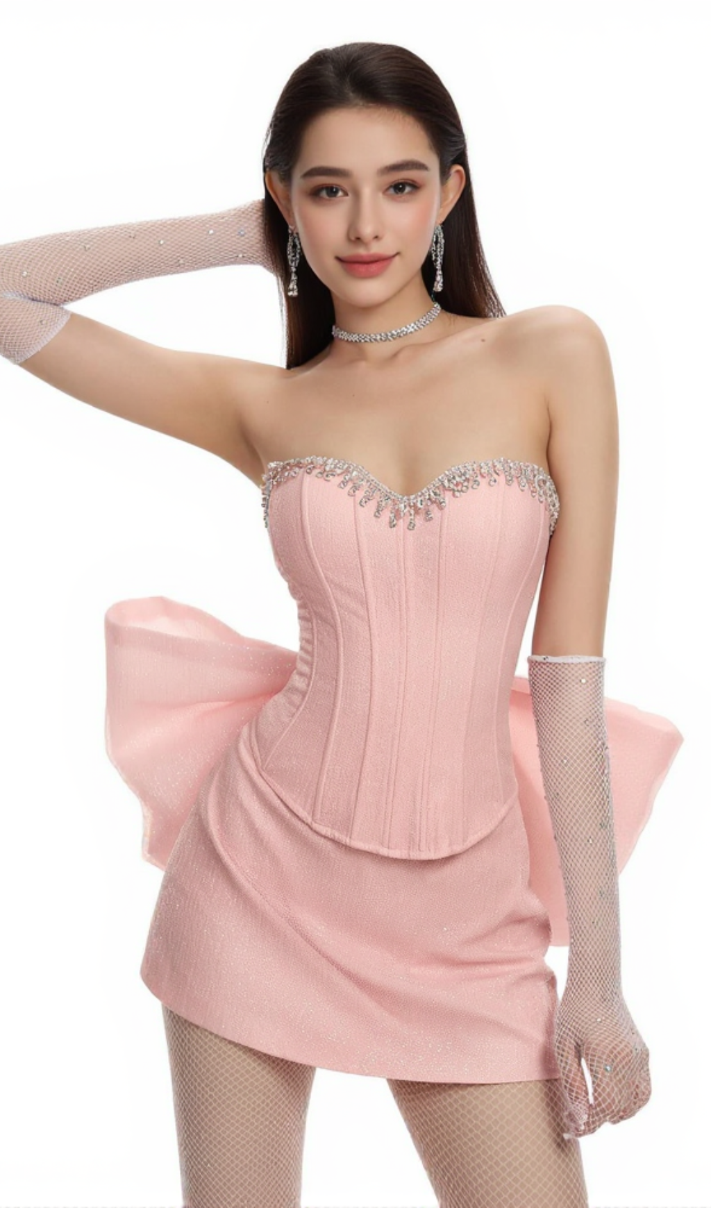 back bowknot embellished skirt suit in pink
