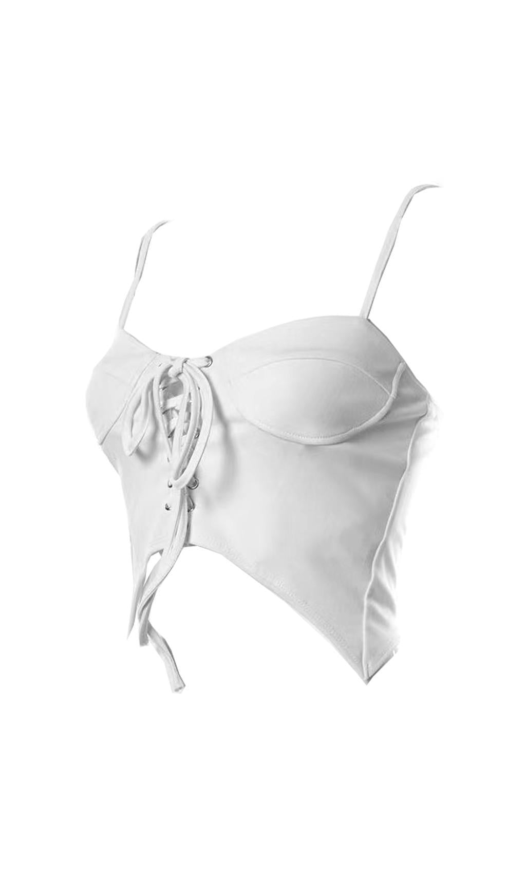 Backless lace-up tank top.