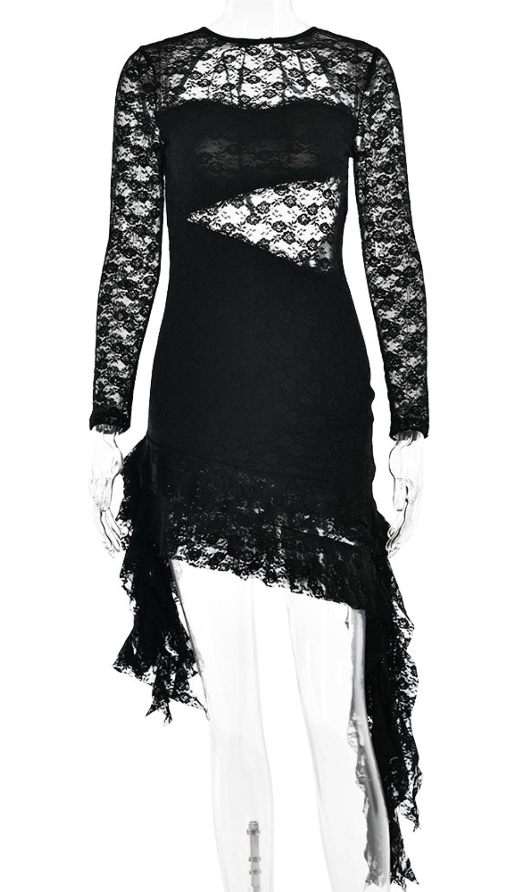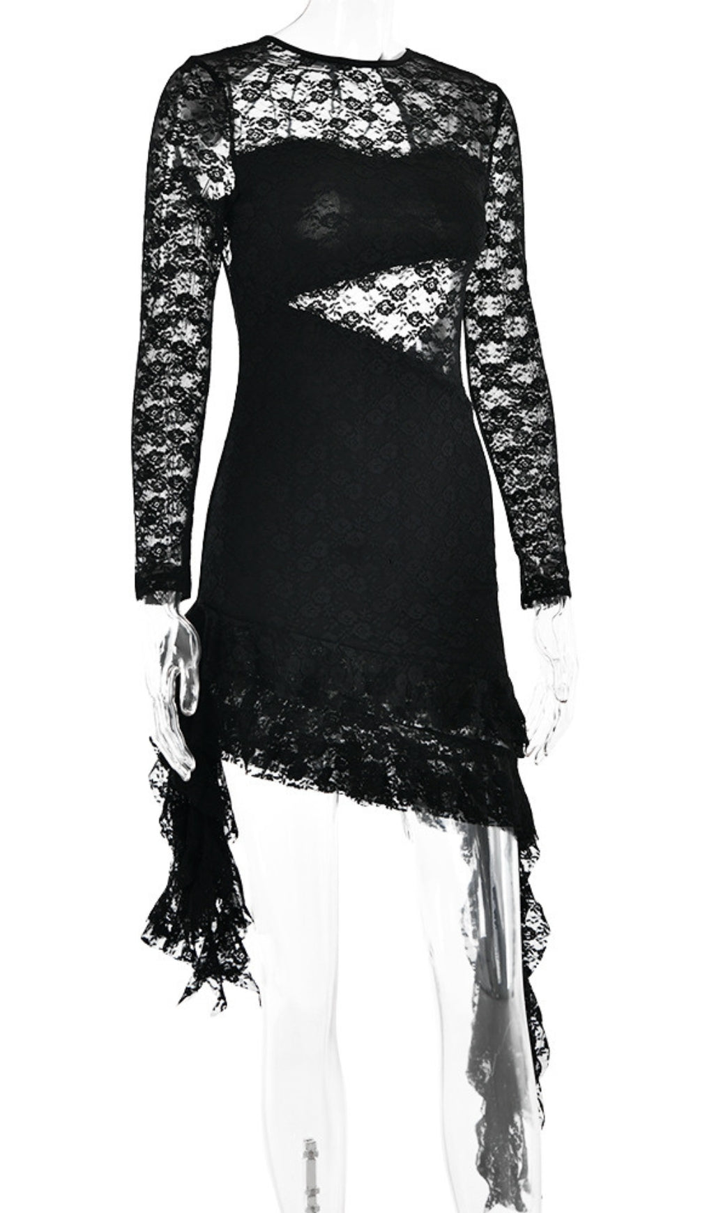 AKI BLACK RUFFLE LACE DRESS