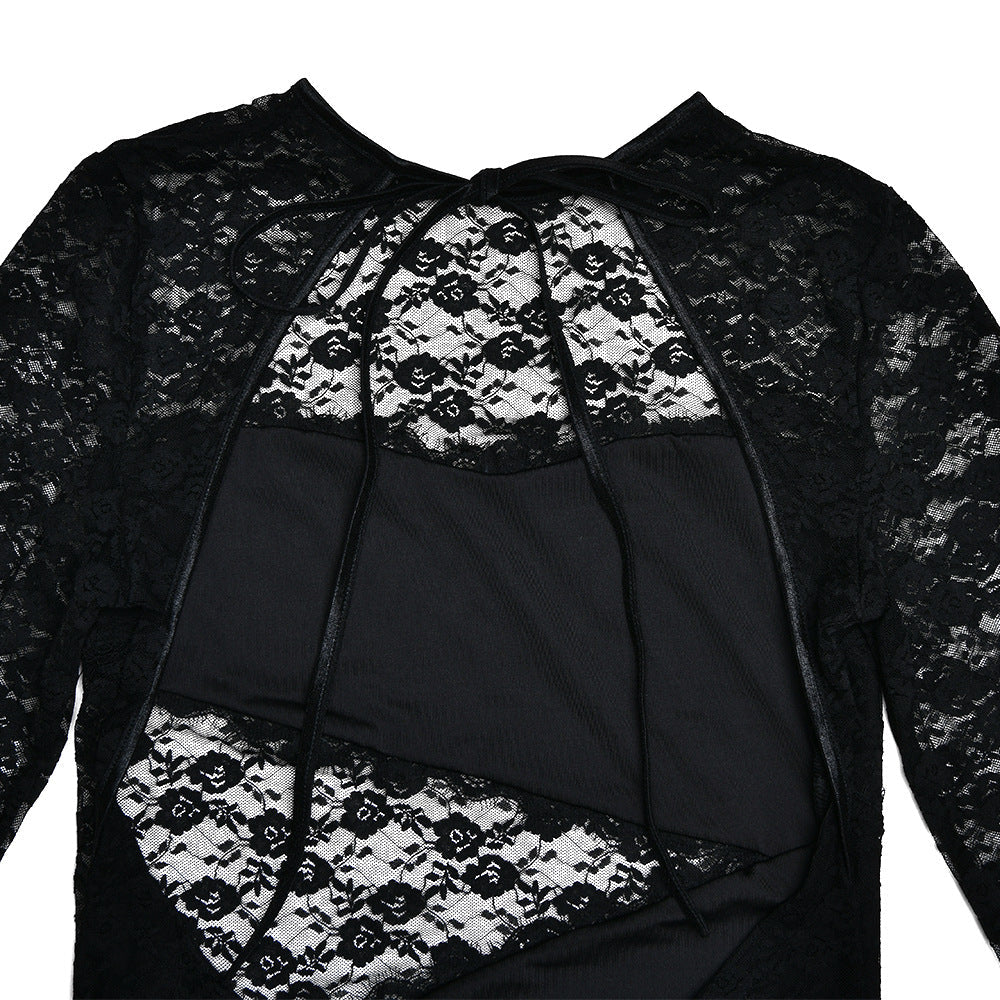 The daring backless design and playful ruffled lace details will make you stand out in any crowd. Take a risk and rock this mini dress for a night out or special occasion. Confidence and adventure await! (Only in English)