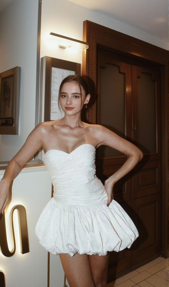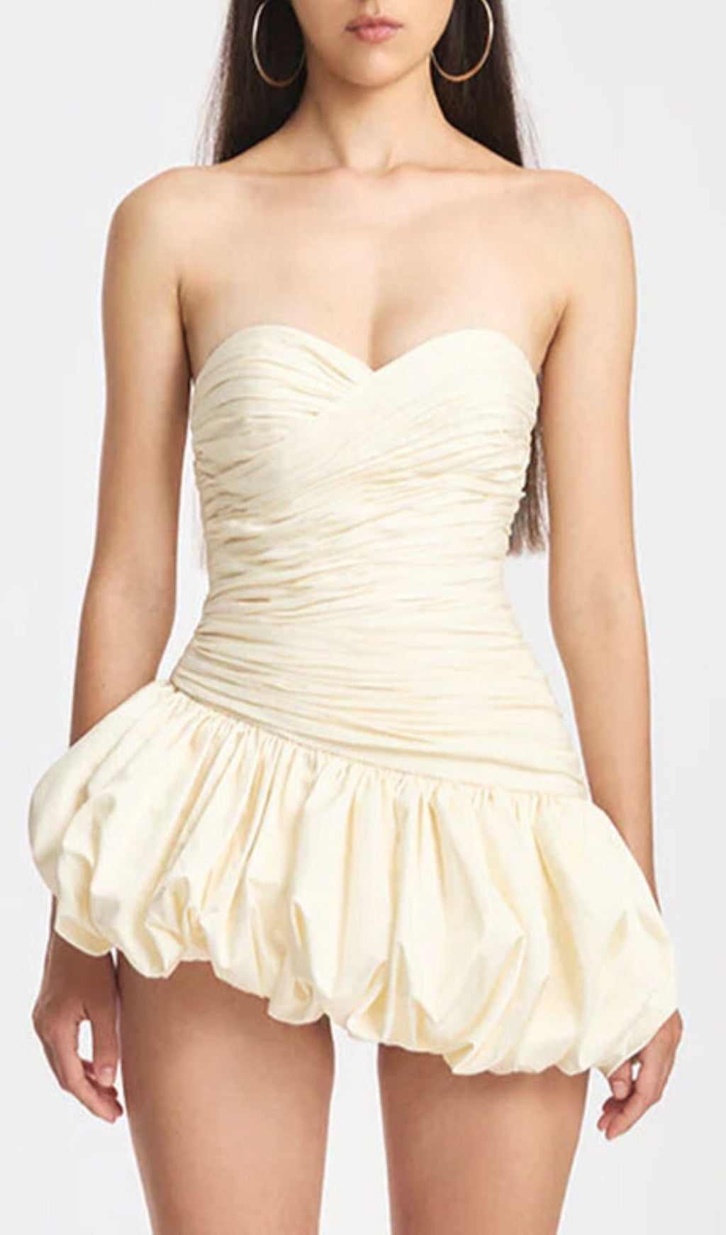 Balloon Draped strapless Mini Dress in white