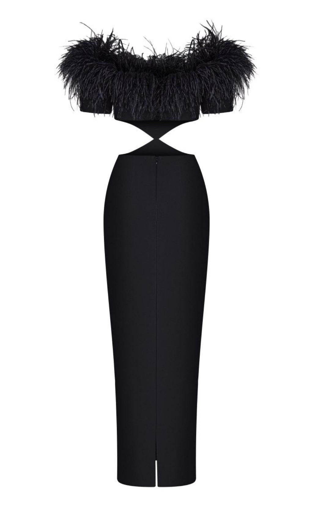 Get ready to make a statement at any party or event with our stunning Bandage Backless Maxi Dress in Black. Designed with attention to detail, this dress exudes elegance and sophistication. The eye-catching breast feathers add a touch of glamour, while the waist's hollow-out design accentuates your curves, making you the center of attention.