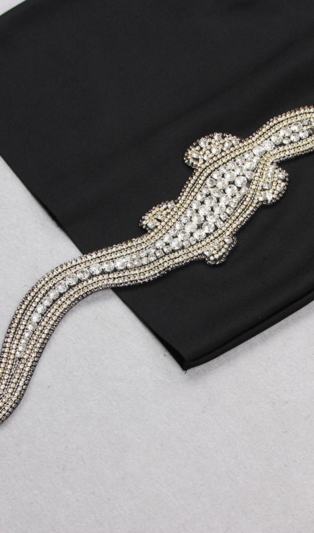Introducing our sultry and feminine Bandage Bodycon Mini Dress in Black. This dress is designed to accentuate your curves and make a statement wherever you go. With its crocodile design and sweeping hem, it exudes feminine appeal and adds a touch of elegance to any occasion.