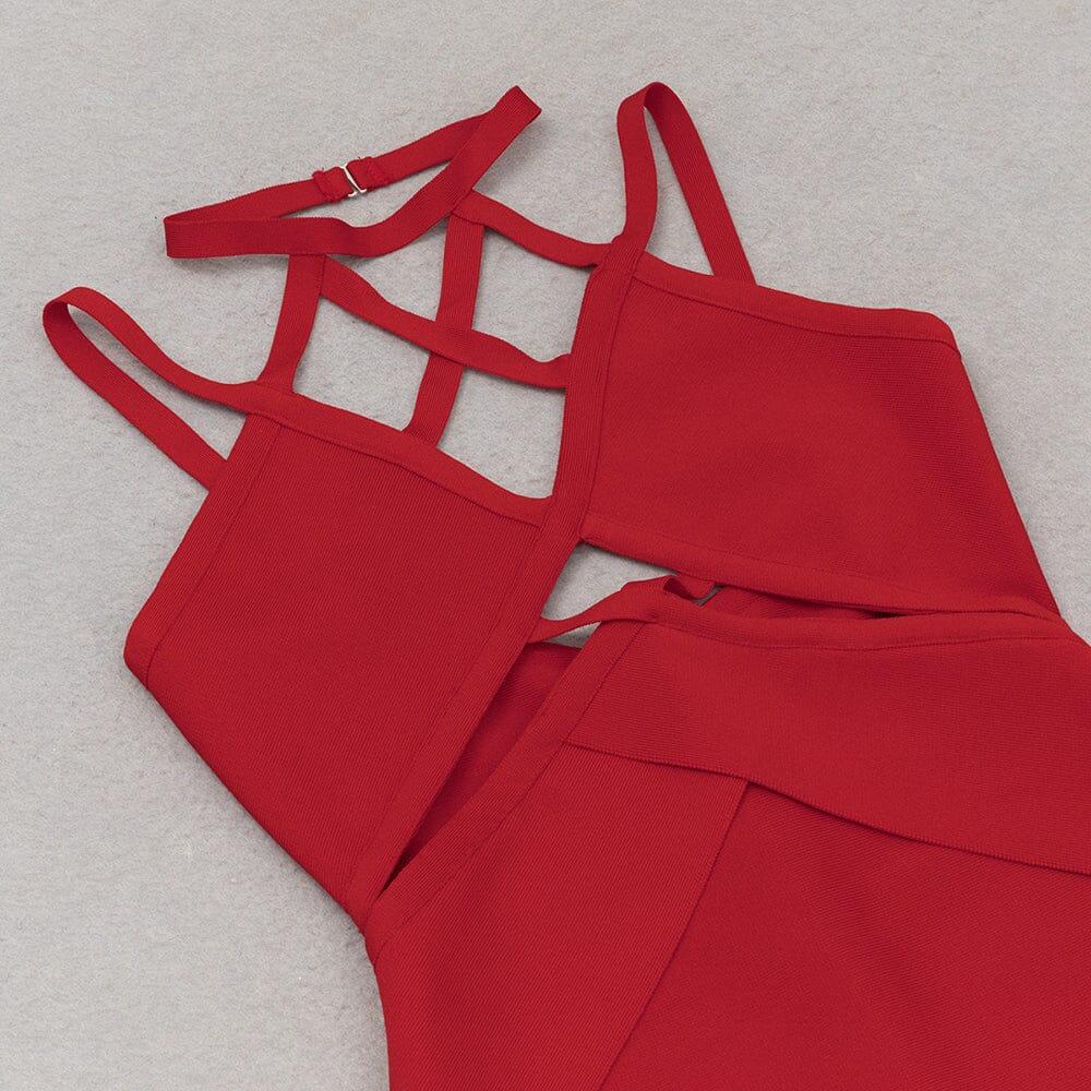 Elevate your style and make a bold fashion statement with our Bandage Cutout Midi Dress in Red. Order yours today and be the center of attention wherever you go!