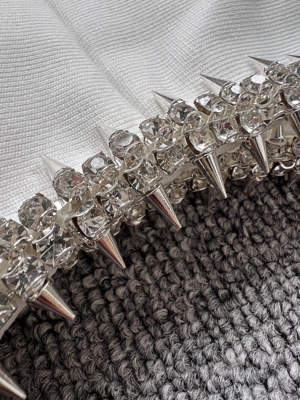 Elevate your style and embrace your inner goddess with our Bandage Diamond Strappy Mini Dress in White. Order yours today and get ready to make a lasting impression wherever you go.