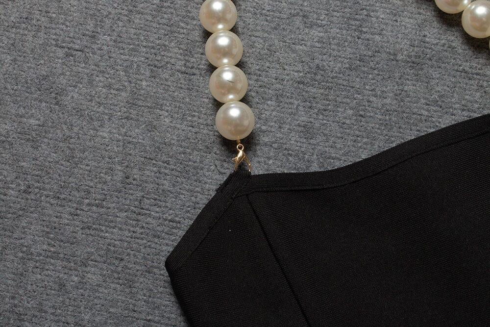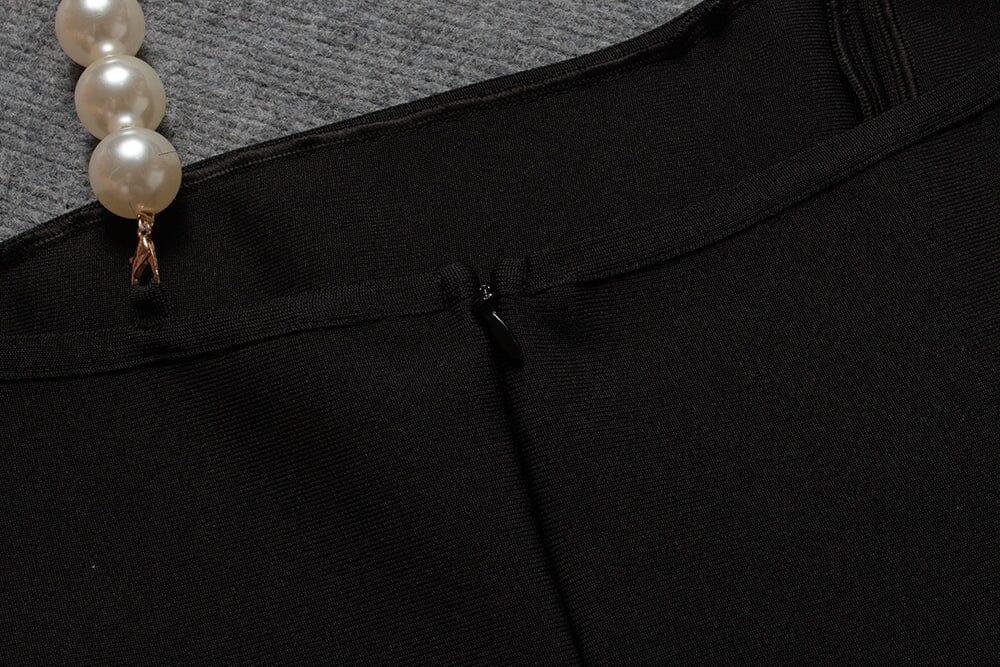 Bandage Feather Pearl Mini Dress in Black