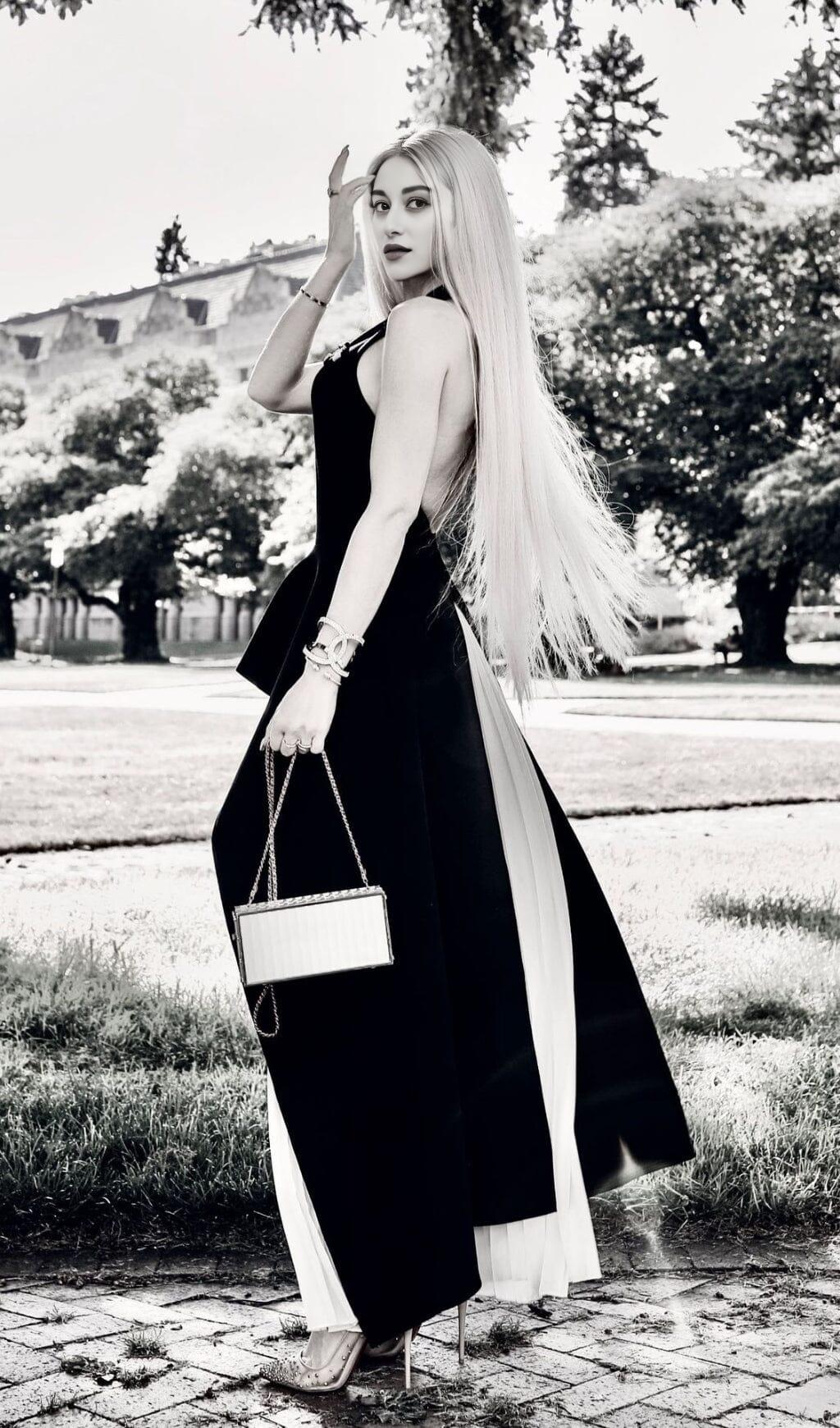 BANDAGE HALTER IRREGULAR MAXI DRESS IN BLACK AND WHITE