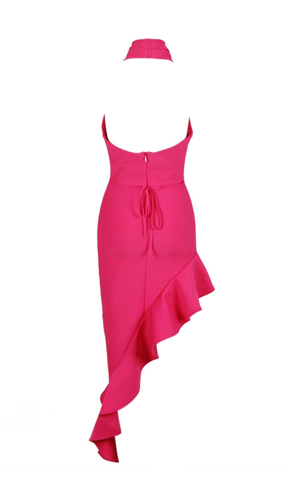BANDAGE HALTER MIDI DRESS IN ROSE PINK