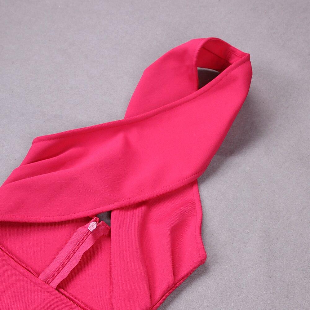 Featuring a flattering halter neckline and a chic midi length, this dress is both elegant and ****, making it the perfect choice for any occasion. The beautiful rose pink hue adds a touch of femininity and sophistication, while the bandage detailing provides a trendy and fashion-forward look.