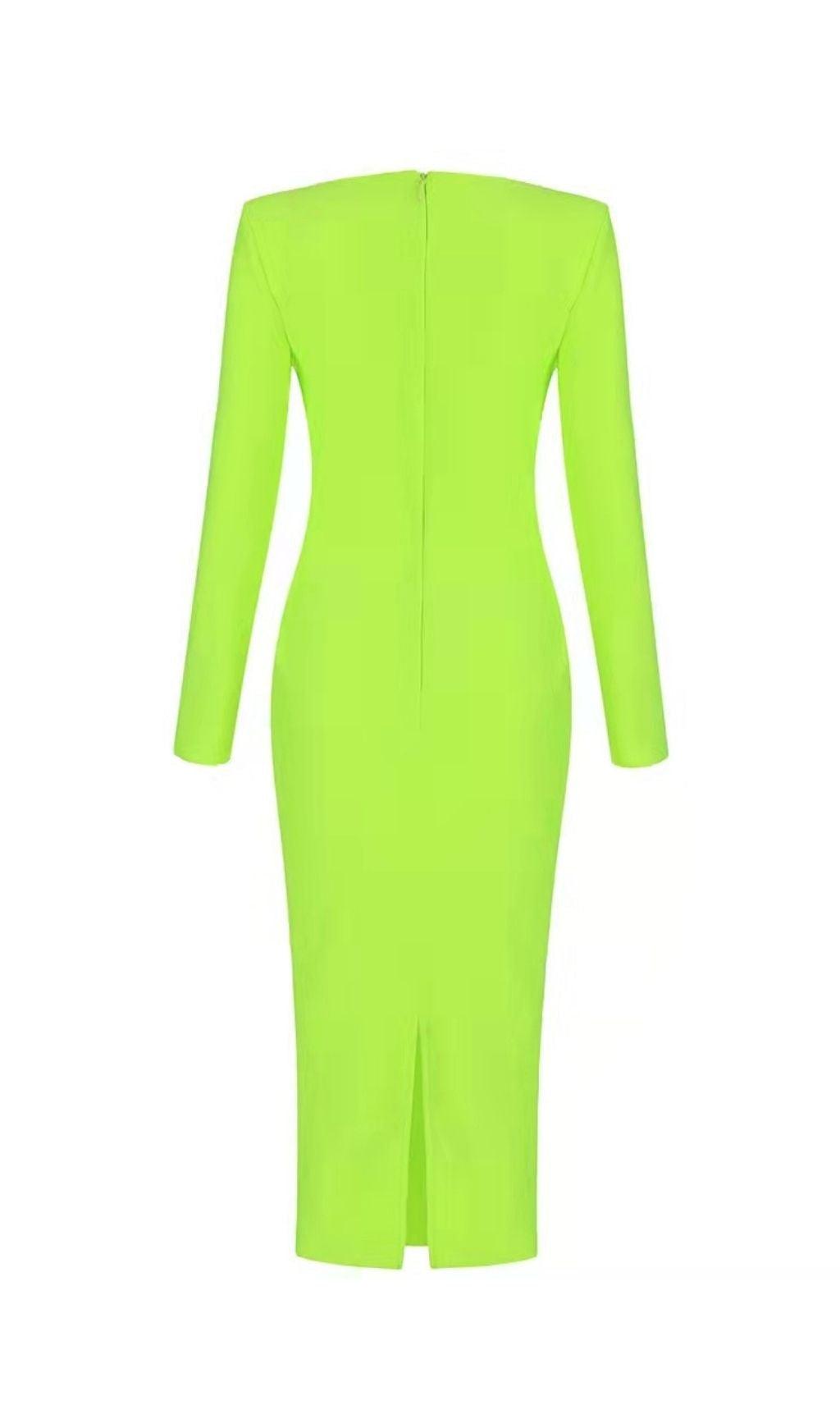 BANDAGE LONG SLEEVE MIDI DRESS IN FLUORESCENT GREEN