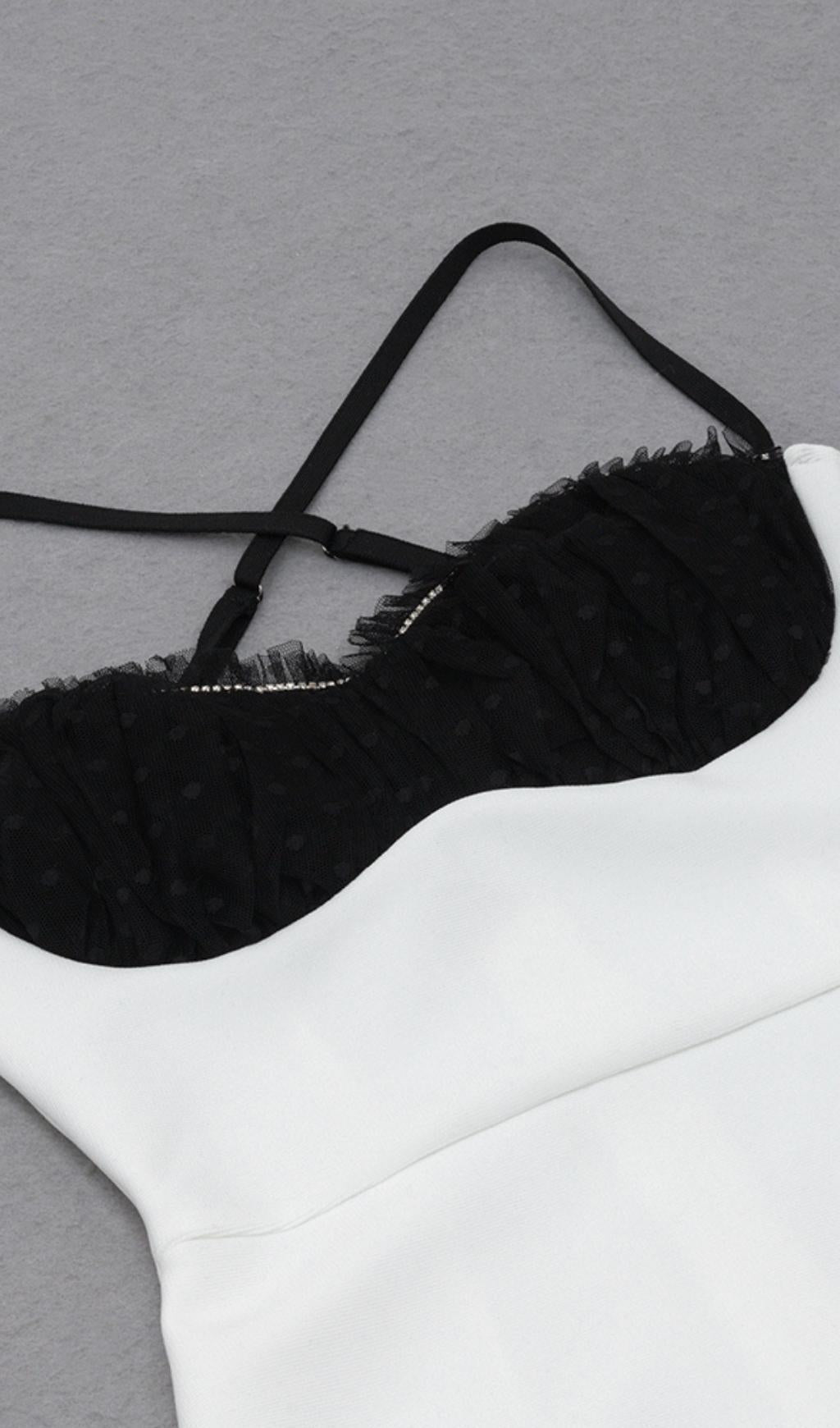 If you want to be a sexier, more attractive woman, check out our Bandage Midi Dress in White. This dress is designed to enhance your beautiful figure with its waist-in design. The unique chest design will make you the most eye-catching girl in any crowd. The black and white splicing adds an intellectual and elegant touch.