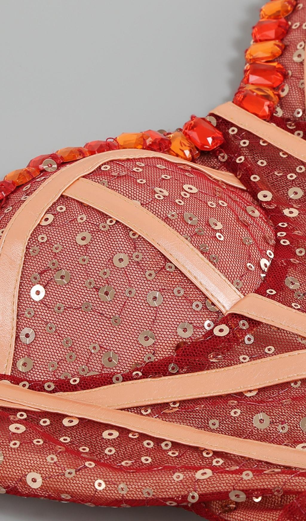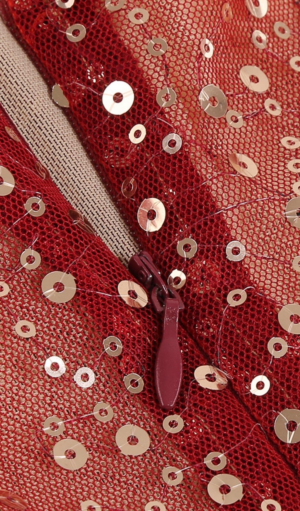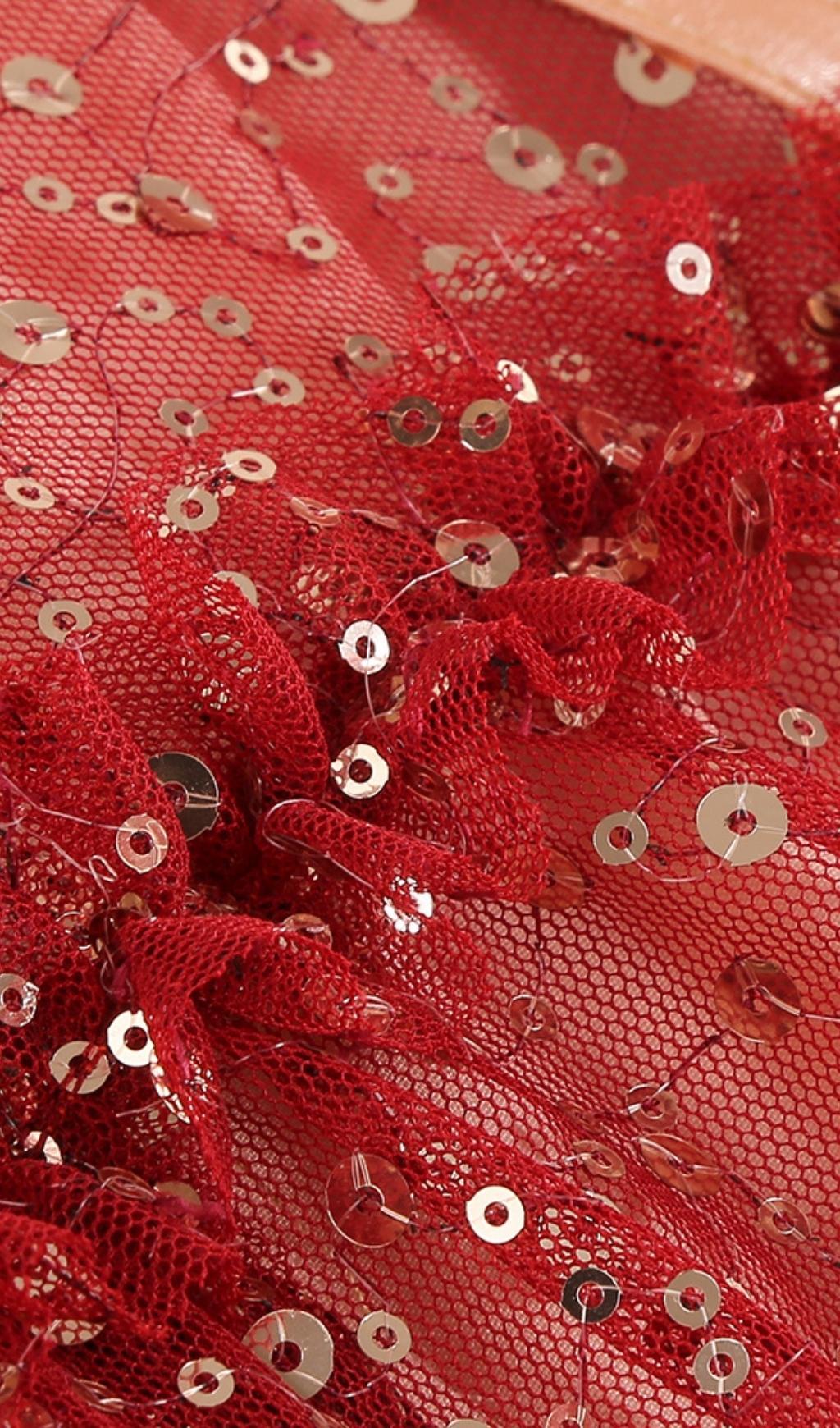 BANDAGE SEQUIN MAXI DRESS IN RED