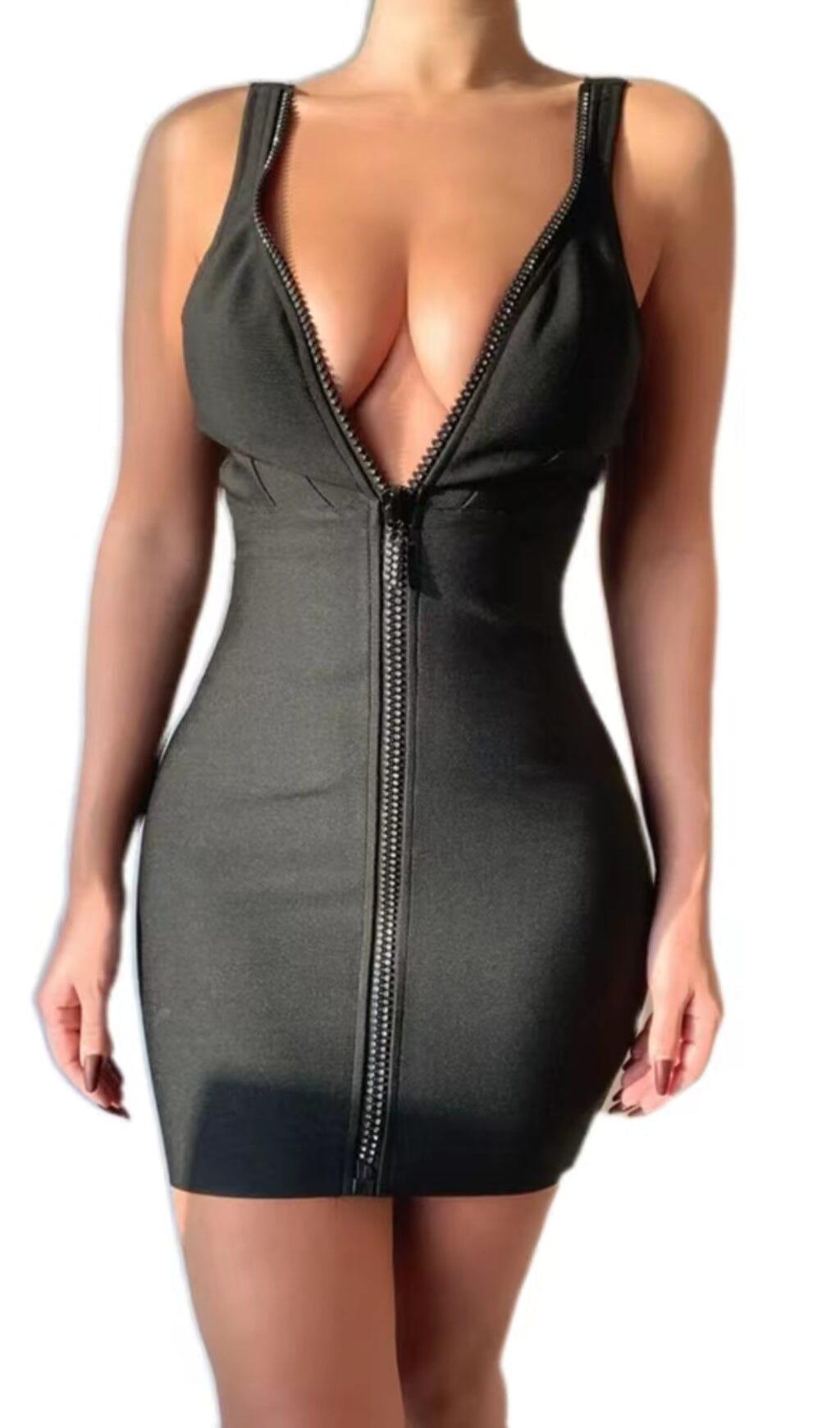 Elevate Your Style with the BANDAGE **** FRONT ZIP DRESS IN BLACK