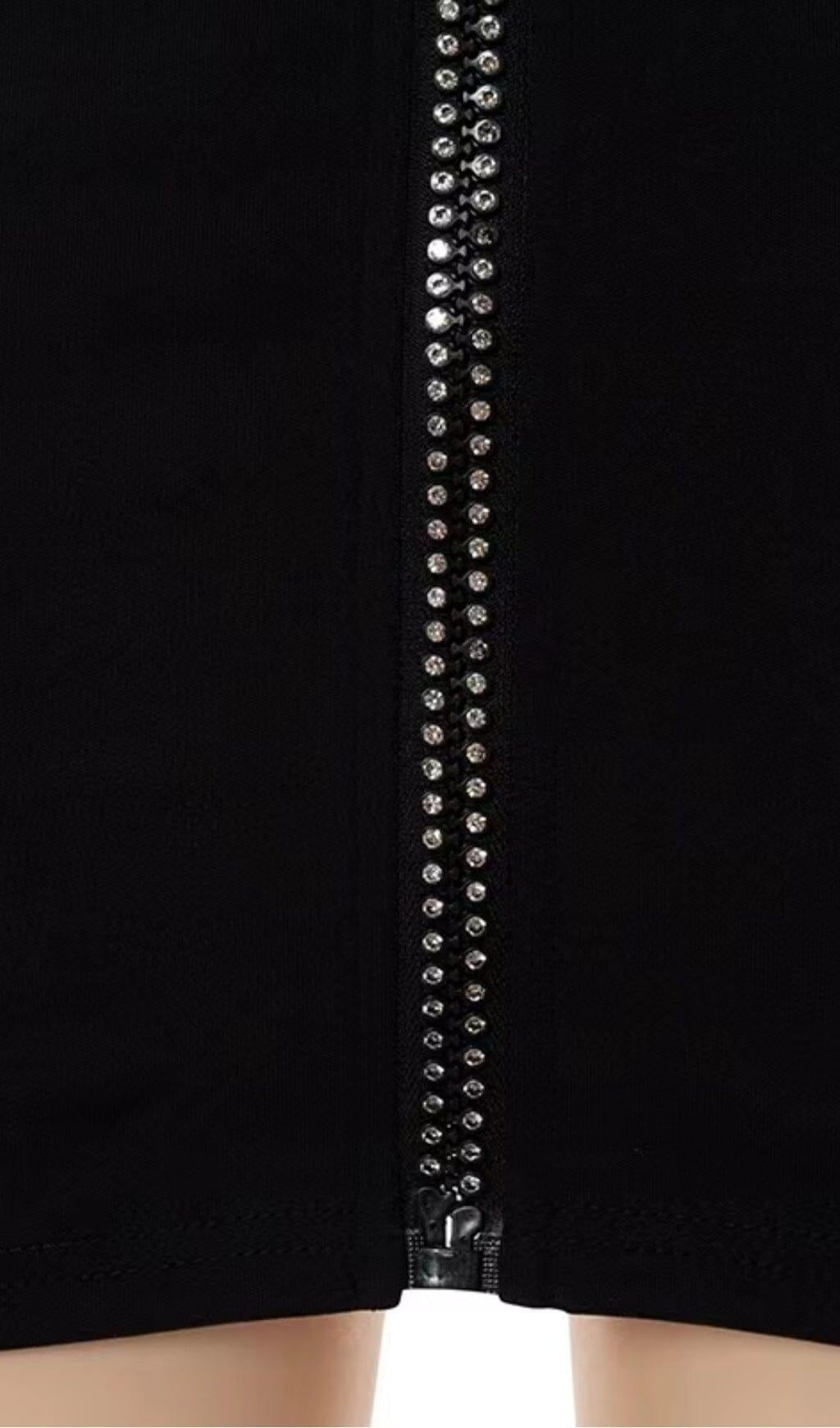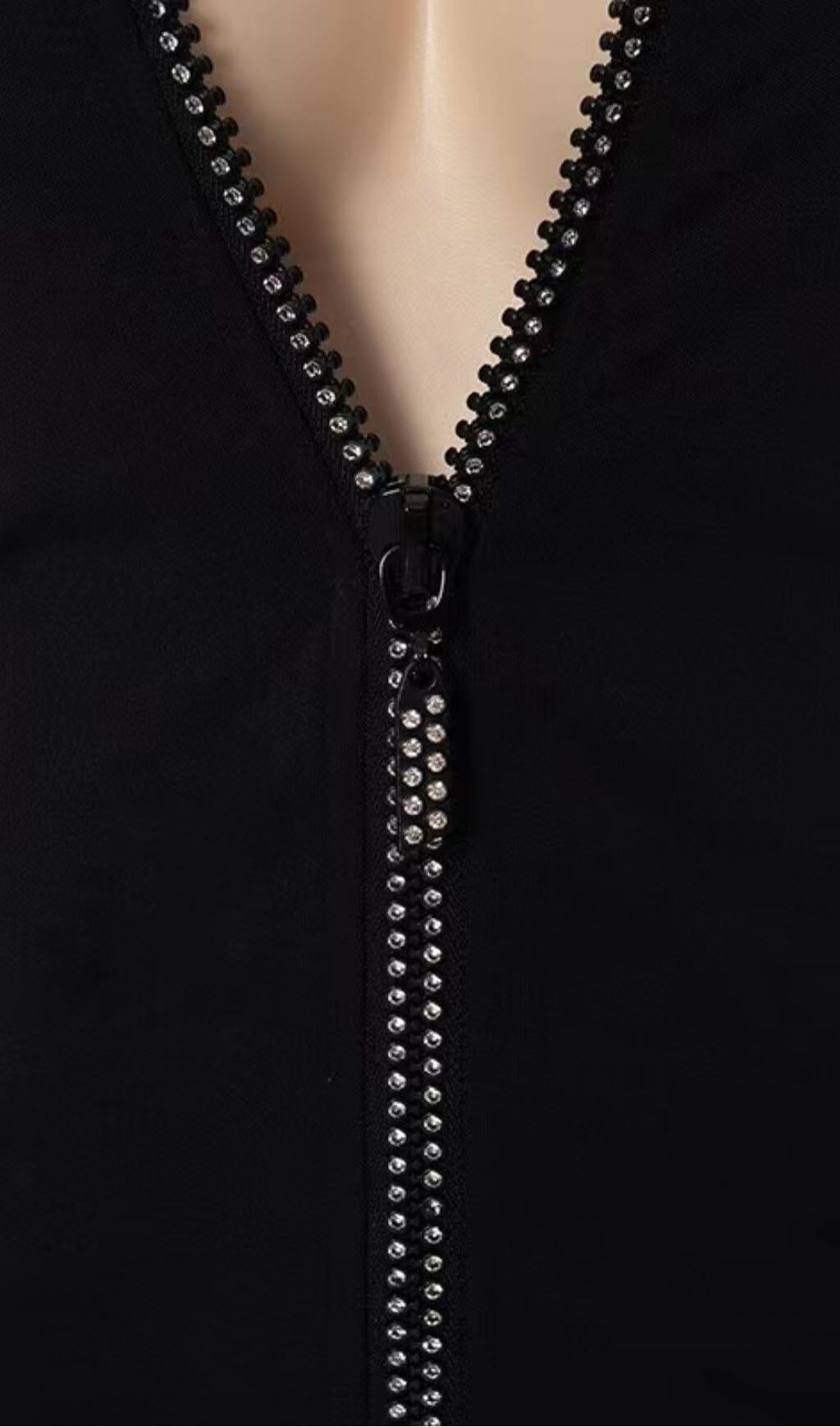 BANDAGE SEXY FRONT ZIP DRESS IN BLACK