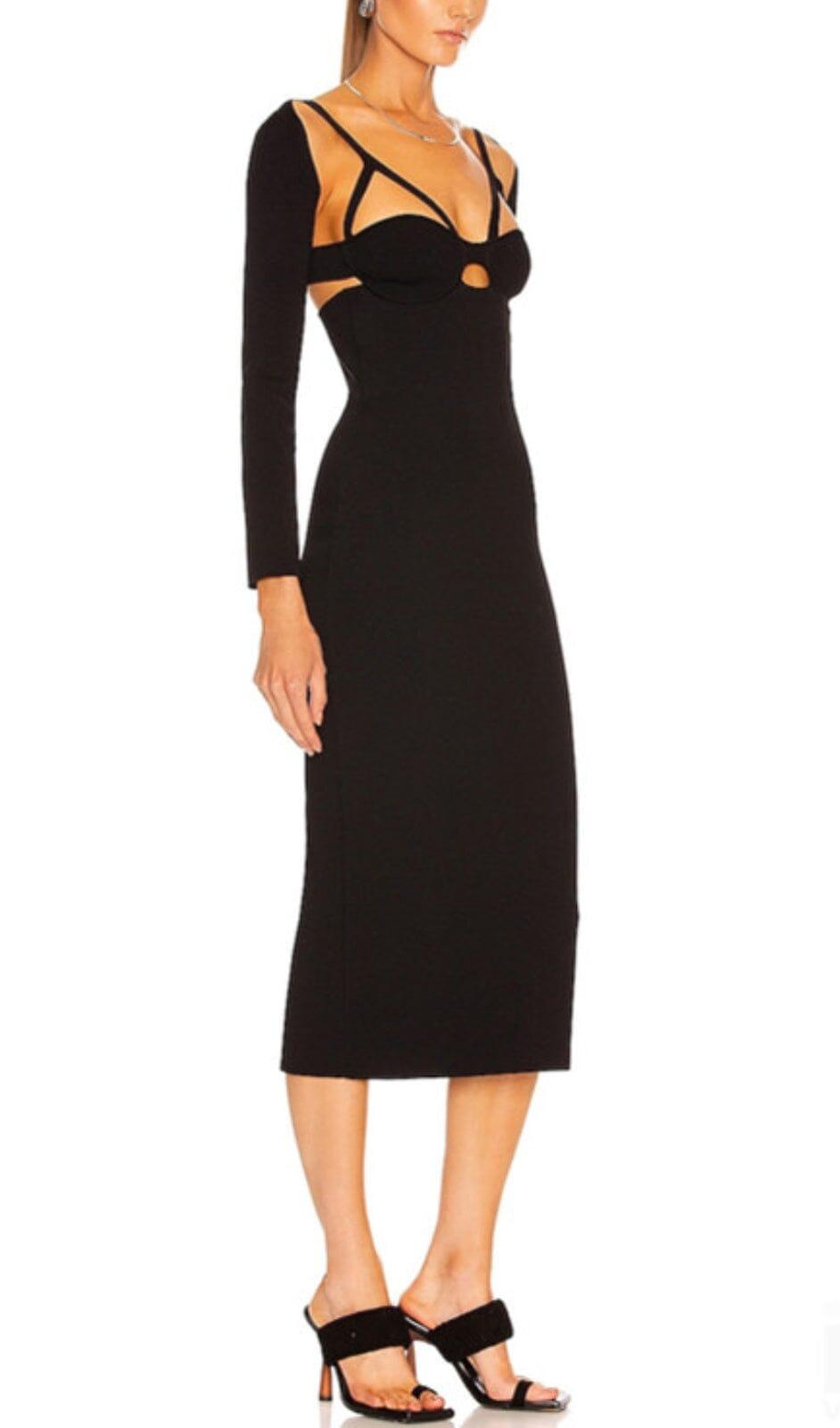 BANDAGE HALTER HOLLOW SKINNY SLIM MIDI DRESS IN BLACK