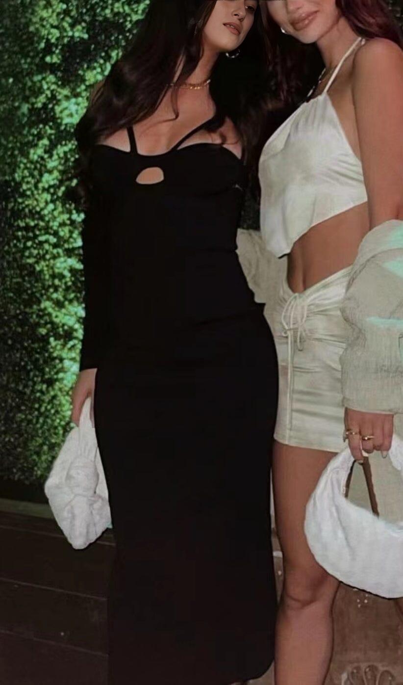 BANDAGE SEXY HALTER HOLLOW SKINNY SLIM MIDI DRESS IN BLACK