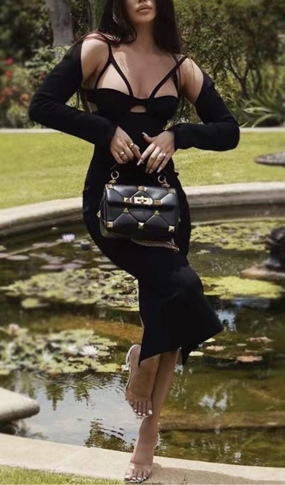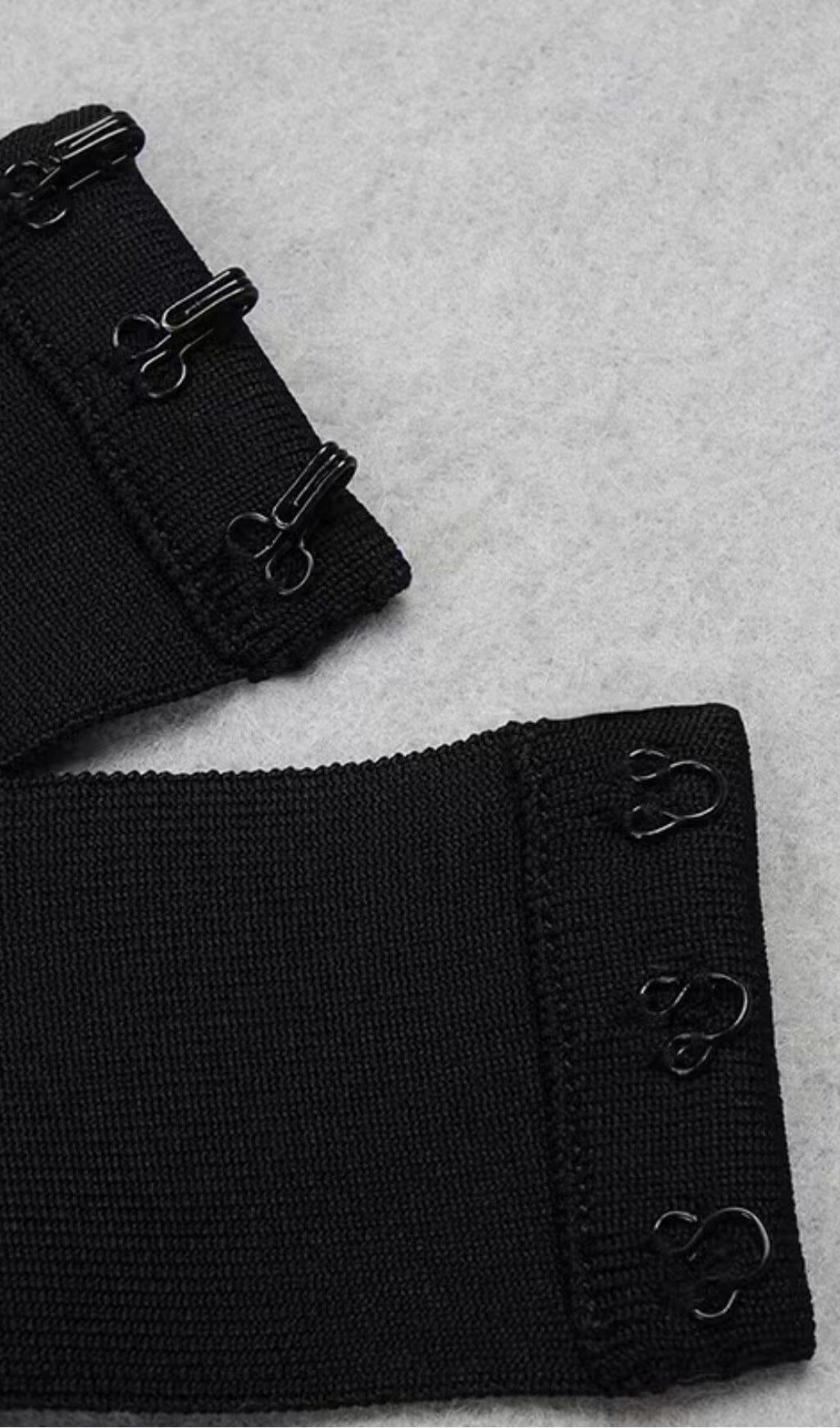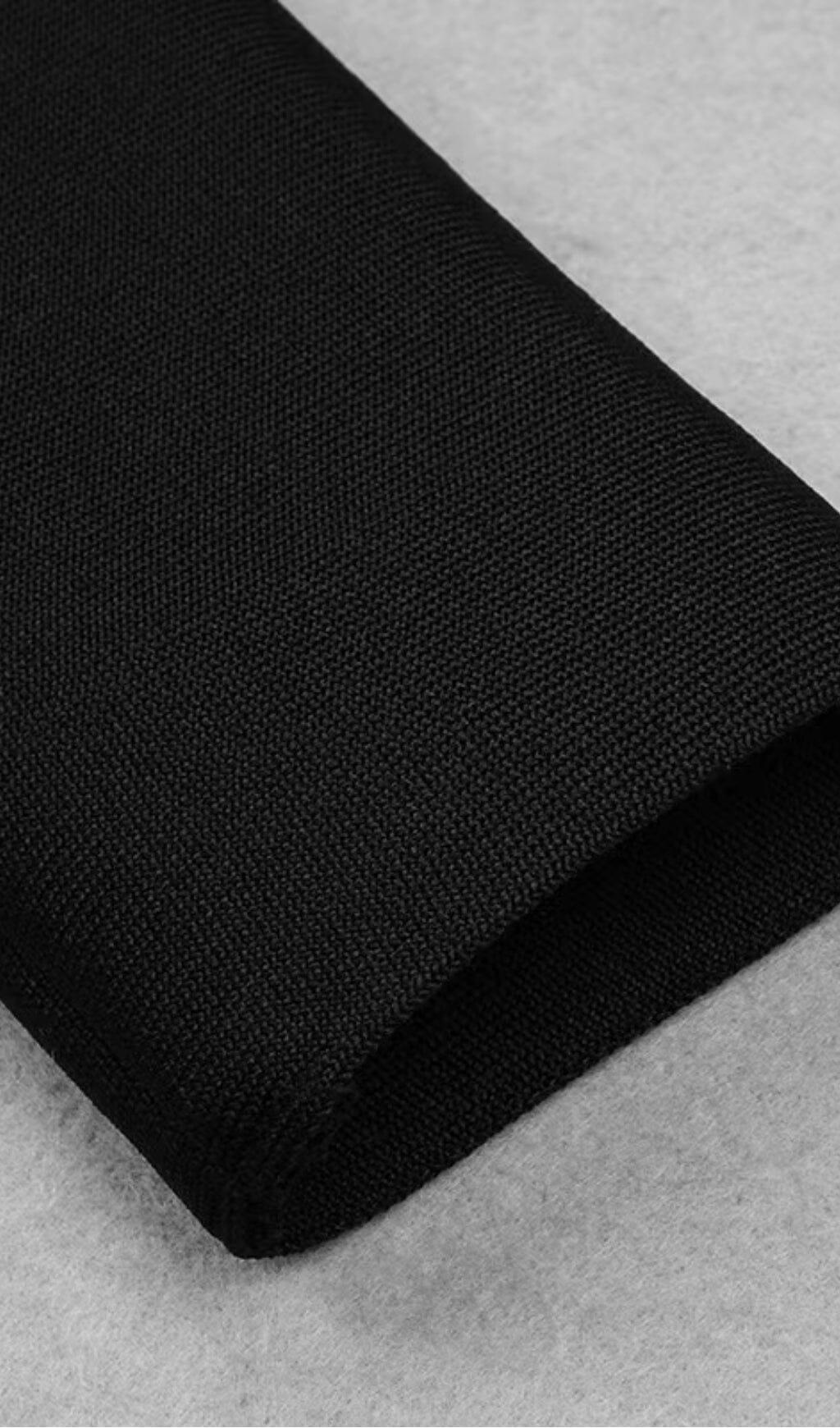 • The dress is made of black bandage fabric, ensuring a perfect fit and comfortable wear.