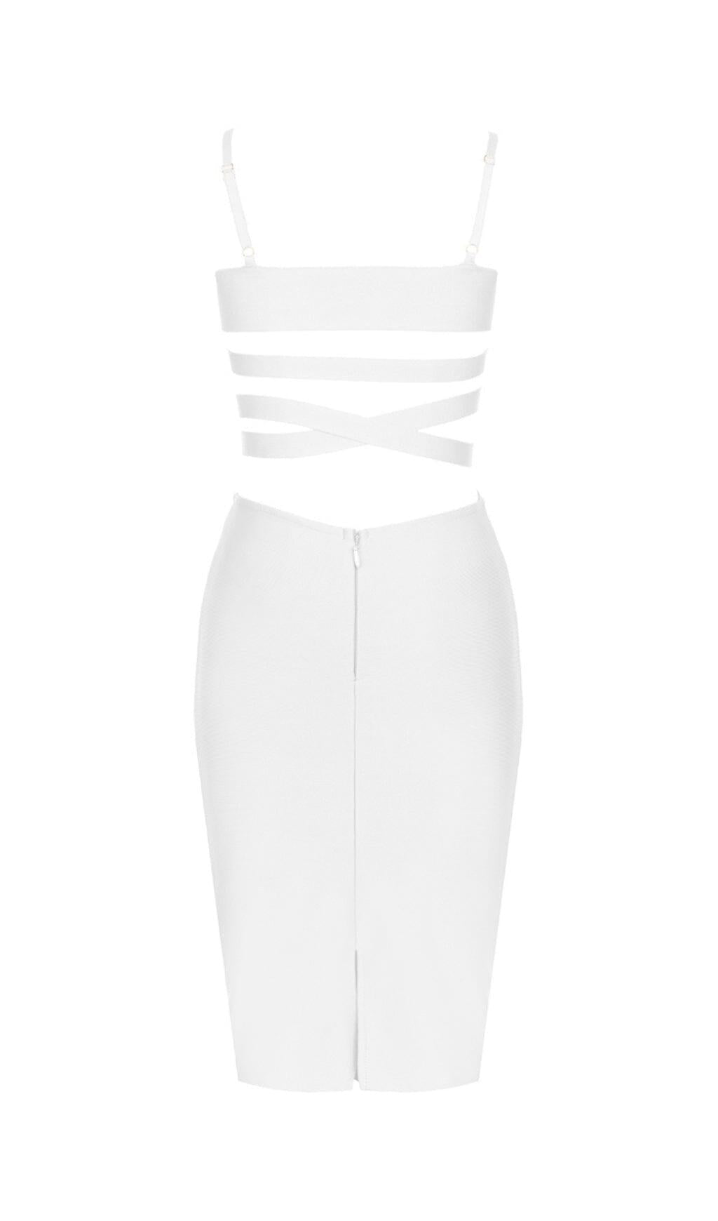 BANDAGE STRAPPY WAIST-TIGHTENING MIDI DRESS IN WHITE