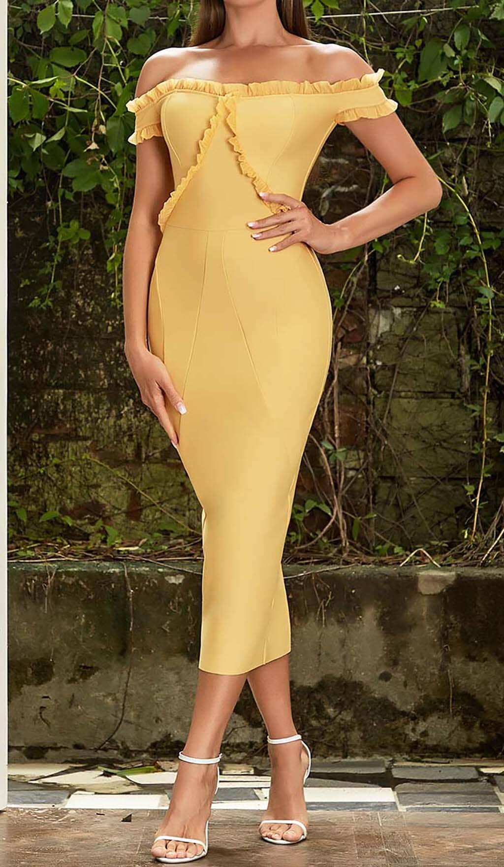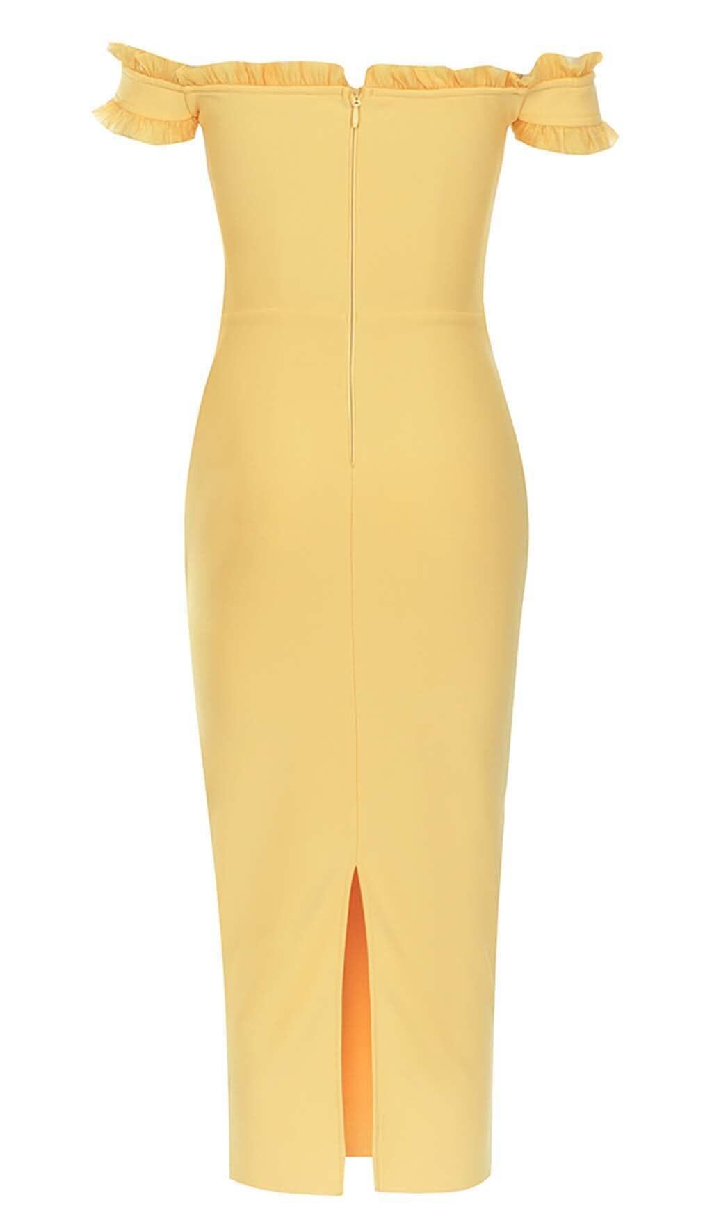 BANDEAU BANDAGE MIDI DRESS IN YELLOW