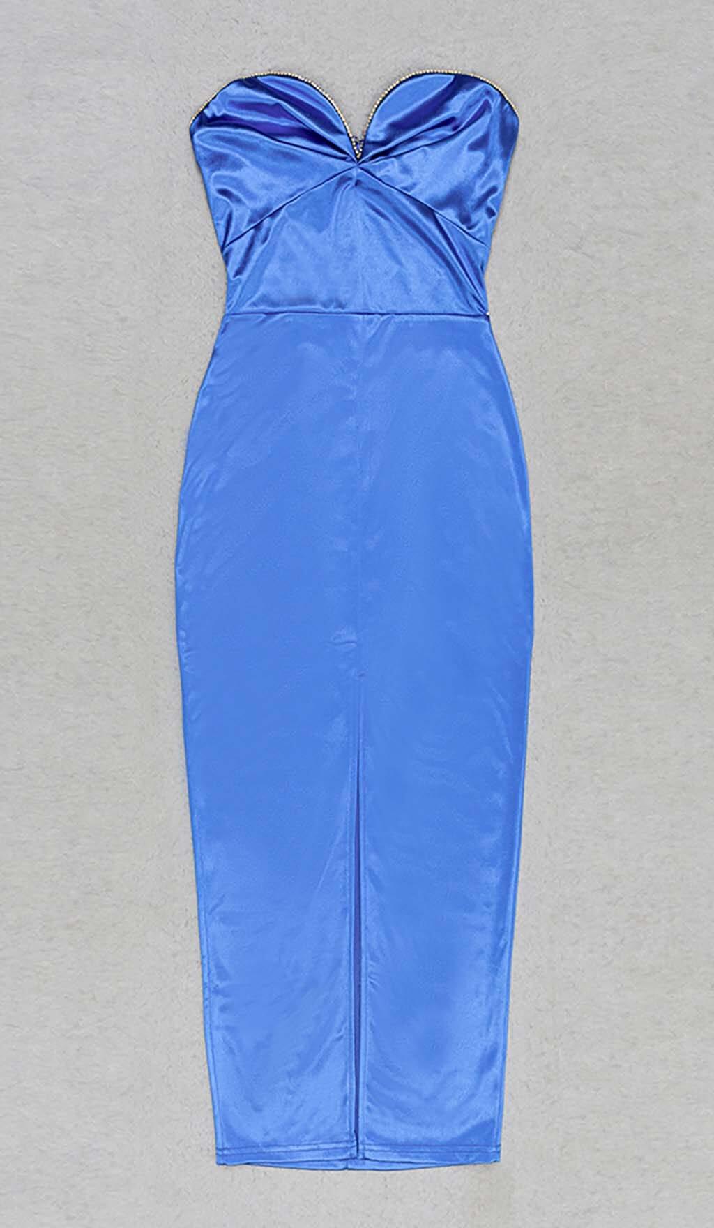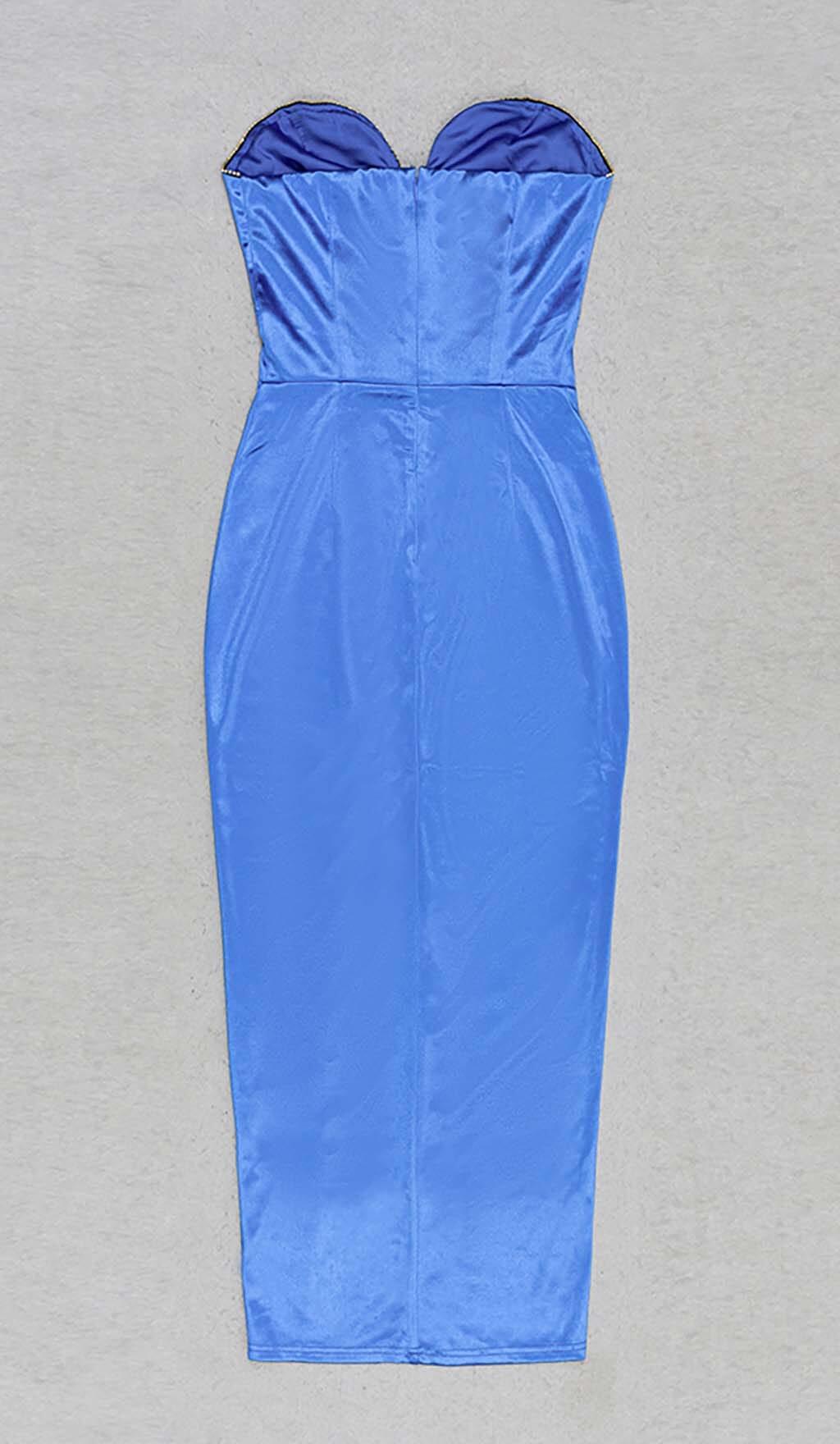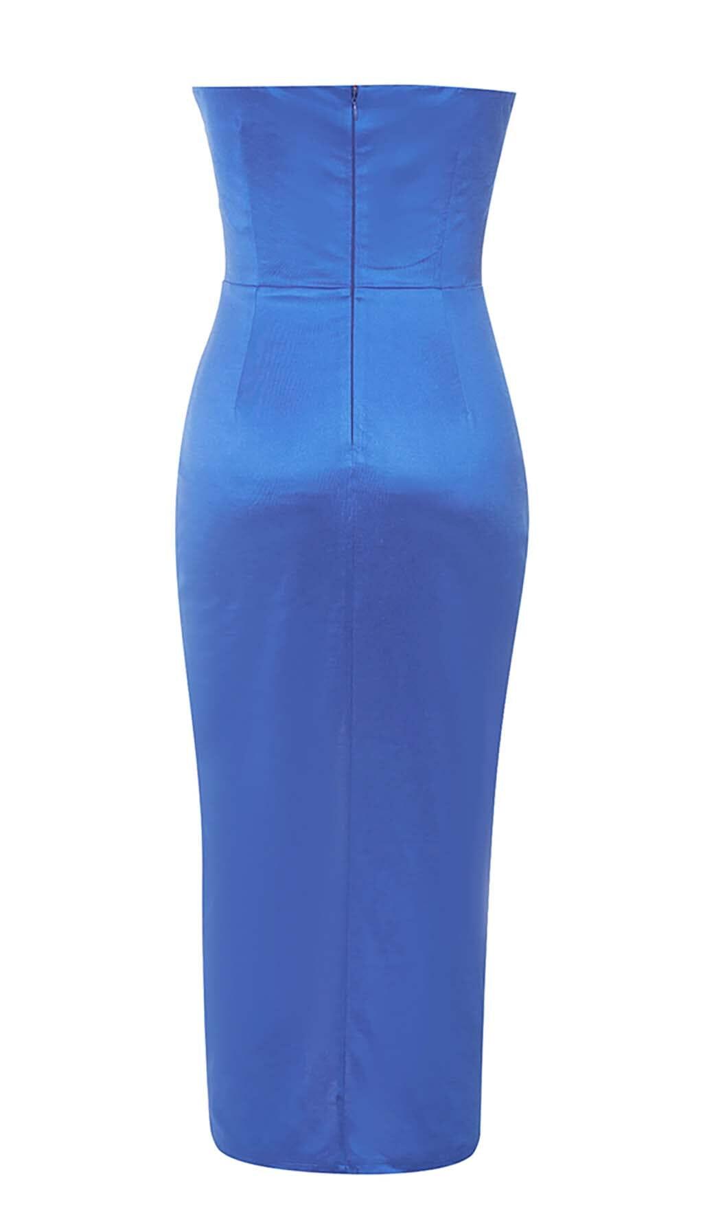 BANDEAU BODYCON MIDI DRESS IN BLUE