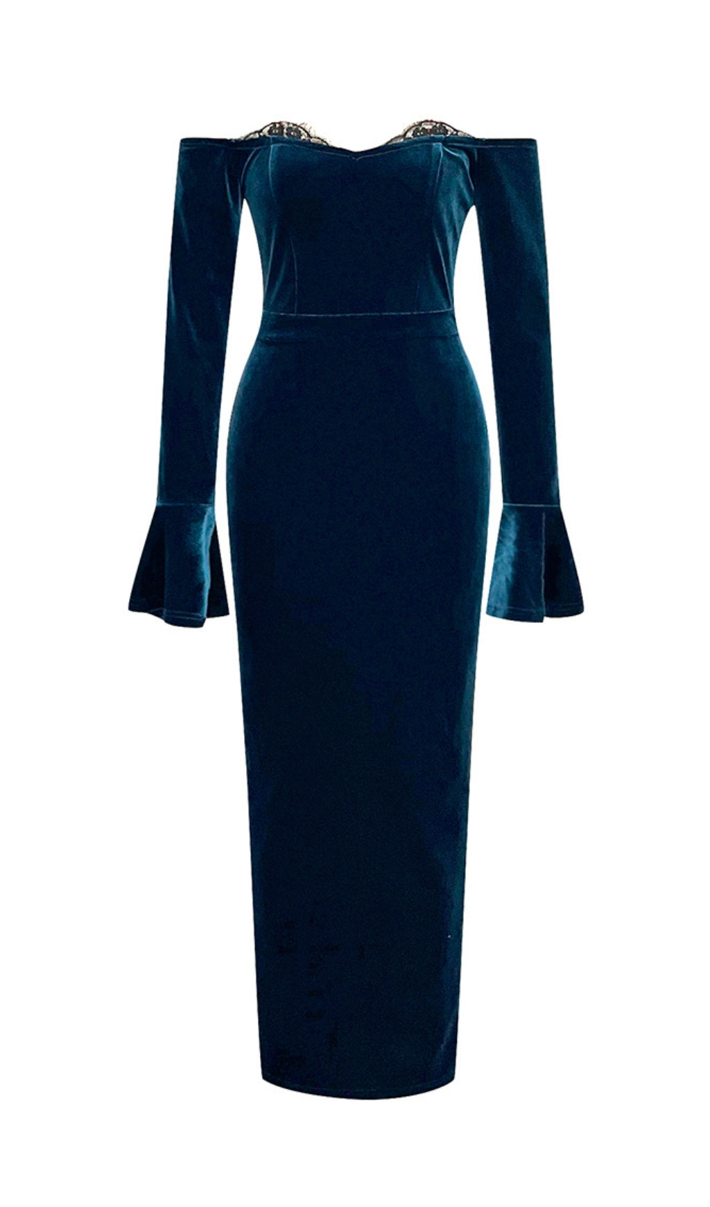 Designed with delicate lace panels and flared sleeves, this dress is perfect for any special occasion. Feel confident and stylish in this must-have piece.