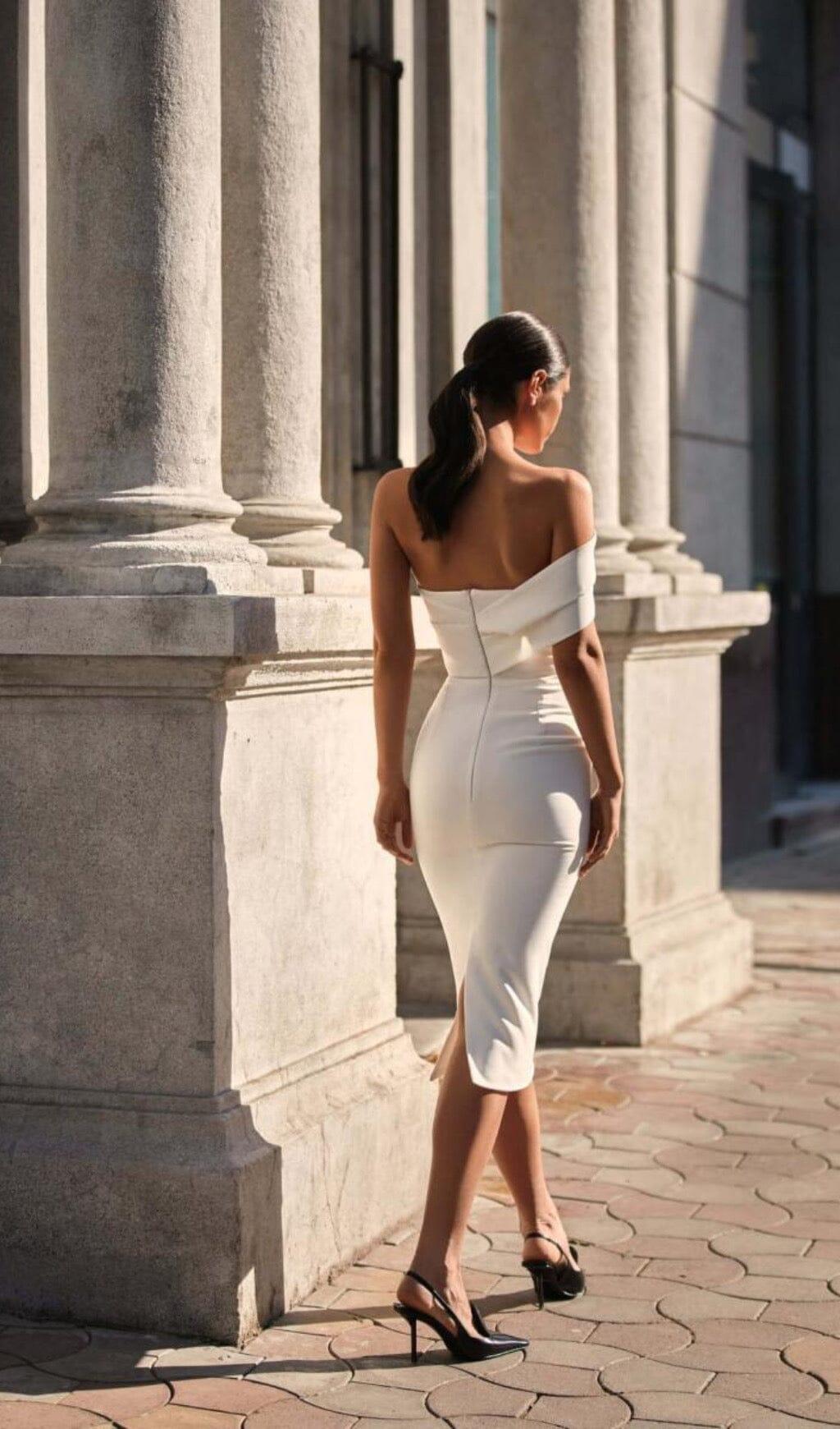 Elevate your style with this Bandeau One-Shoulder Knitted Dress in White. Whether you're attending a special event or simply want to make a fashion statement, this dress is the perfect choice. Embrace its unique design and impeccable quality, and let your confidence shine.
