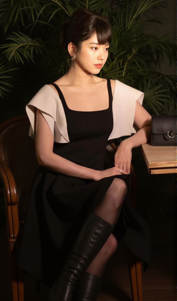 Featuring a sleek square neckline and contrasting white shoulder detail, this dress is the epitome of sophistication. Crafted with premium materials, it exudes elegance and exclusivity, making it a must-have for any luxury wardrobe. Elevate your style with this stunning dress and turn heads wherever you go.