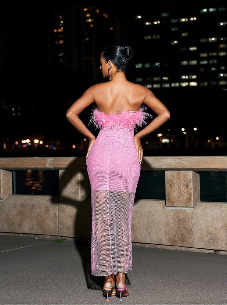 Notice: Please note due to the material of this dress, some feathers might fall. This is not a fault.