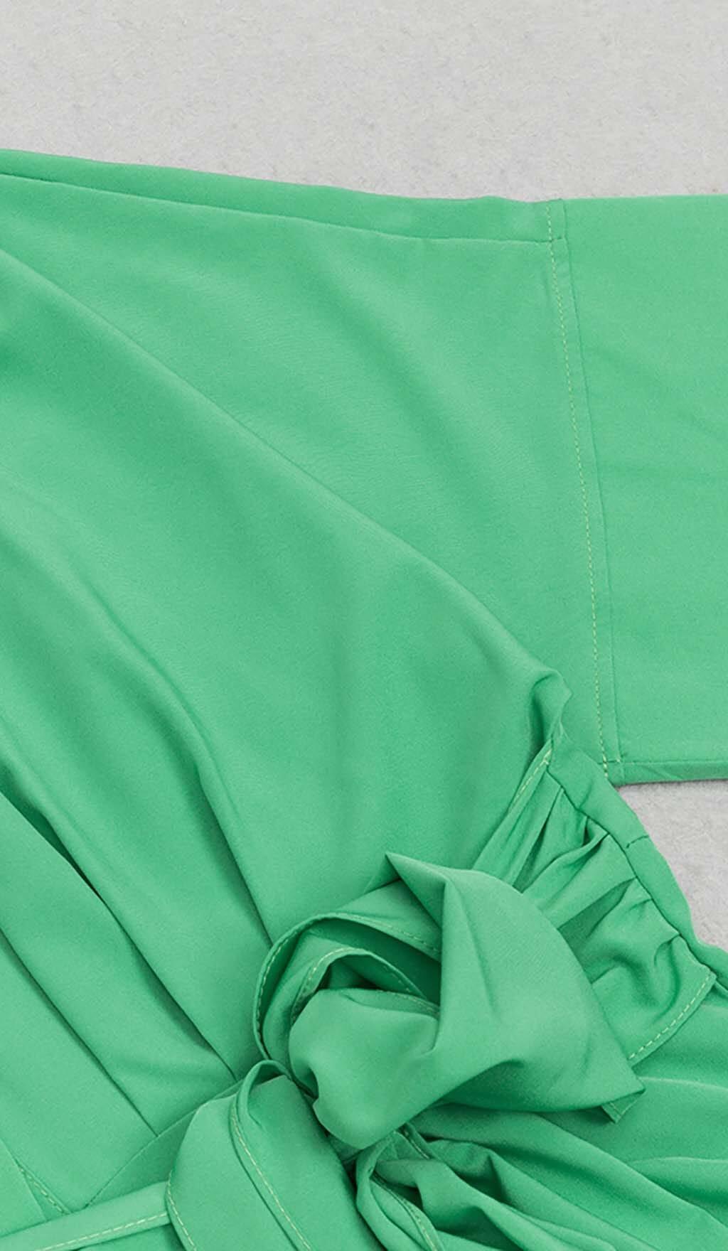 BATWING SLEEVE SHIRT MIDI DRESS IN GREEN