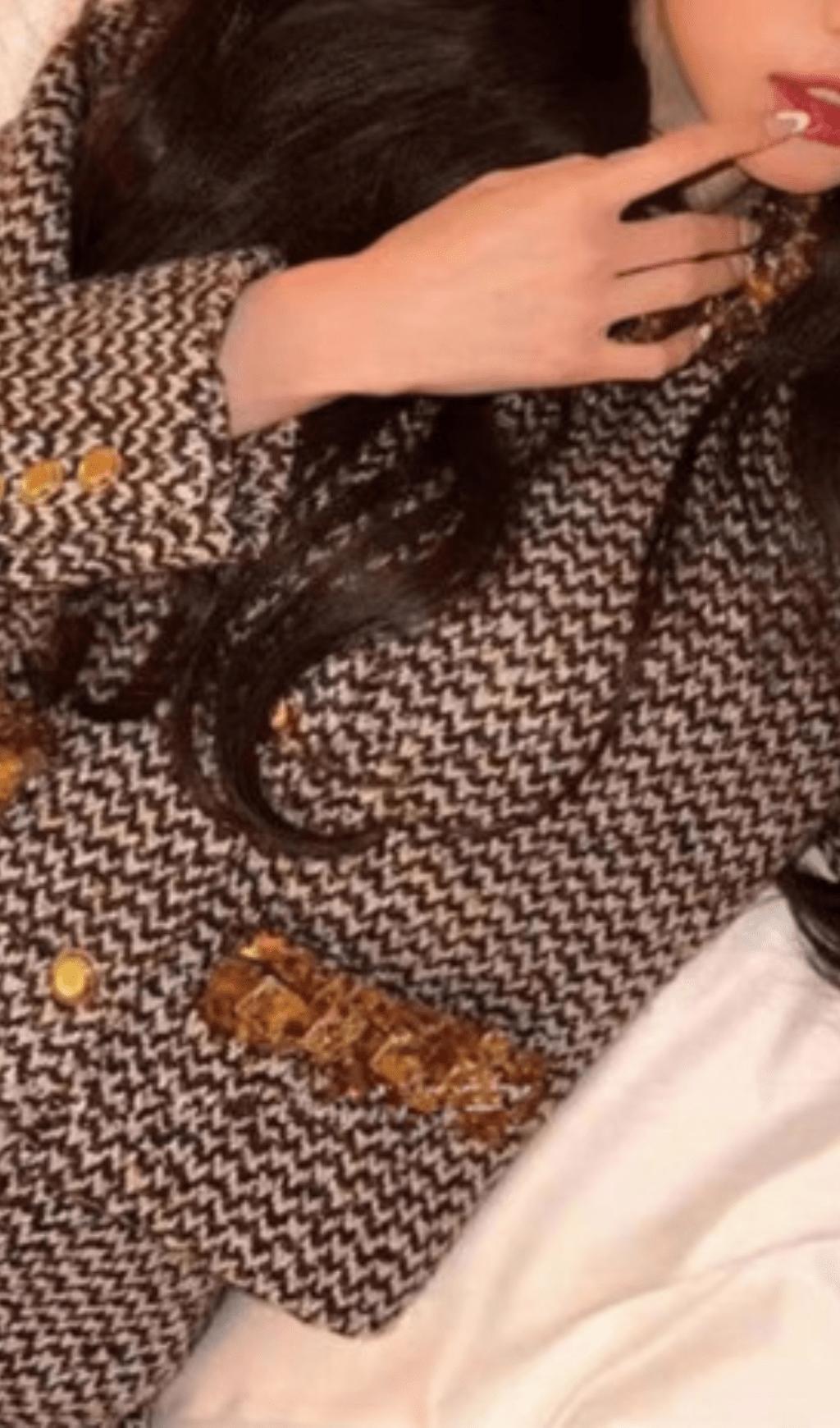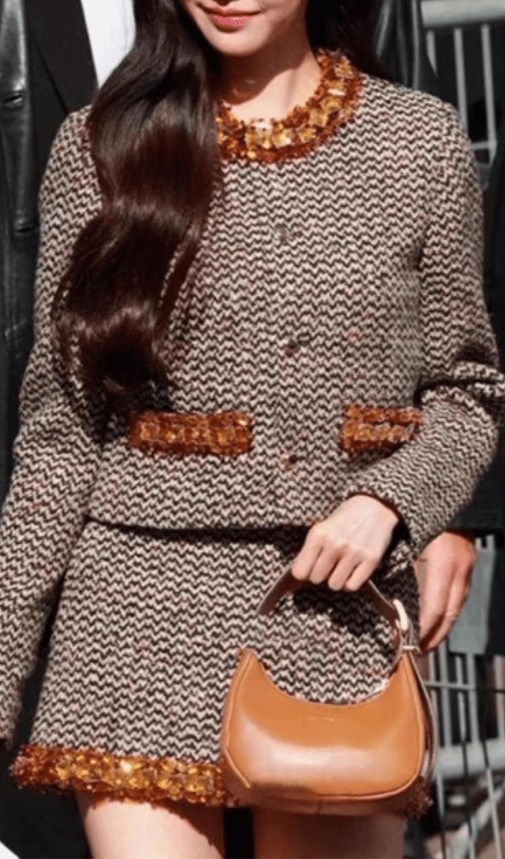 Elevate your style with our suit. The intricate bead embellishments add a touch of whimsy to this classic tweed coat suit, making it perfect for any special occasion. Stay stylish and playful with this unique and fun addition to your wardrobe.