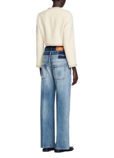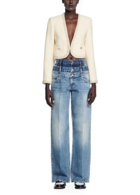 BEAD TRIM CROPPED TWEED JACKET