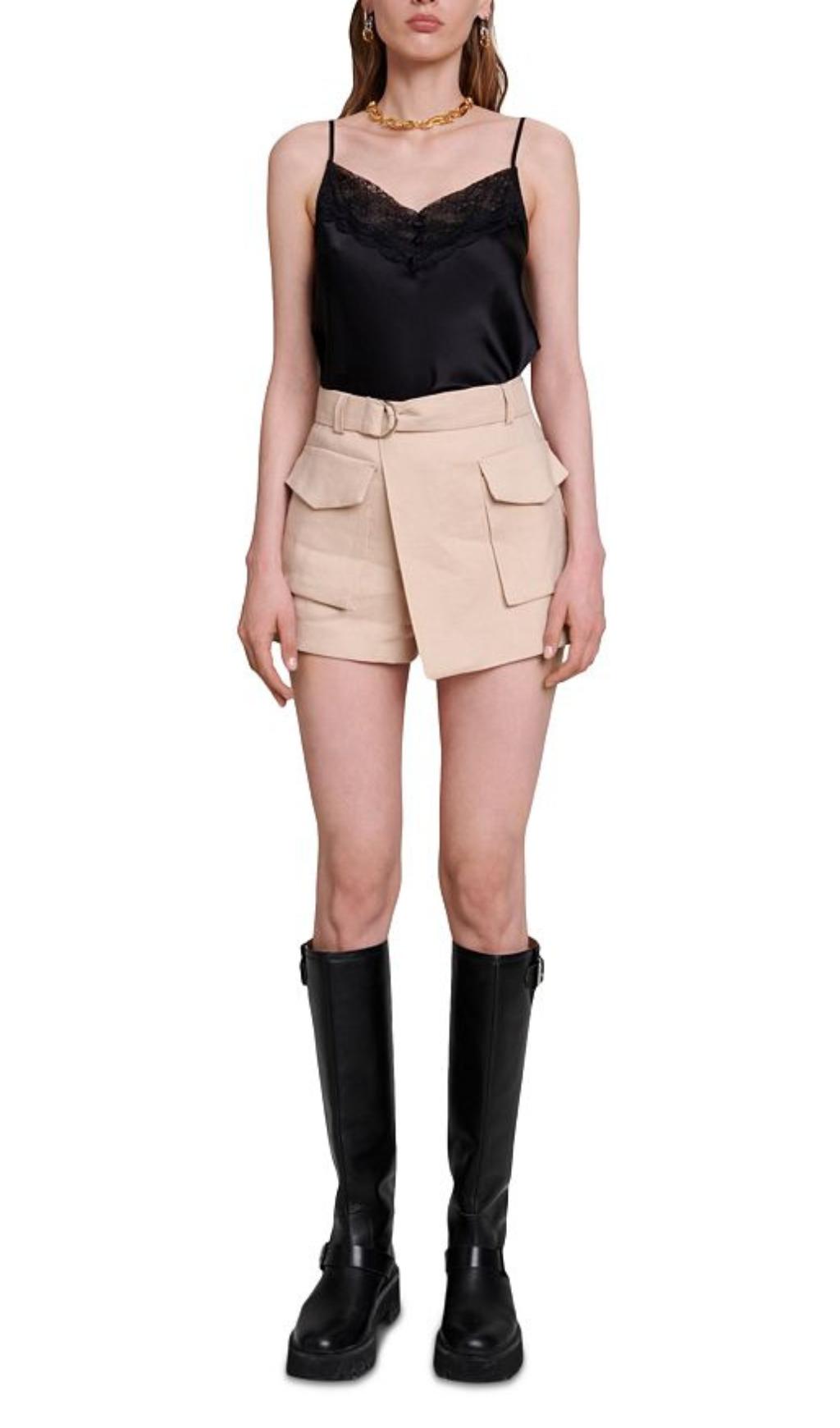 BEIGE BELTED SKORT