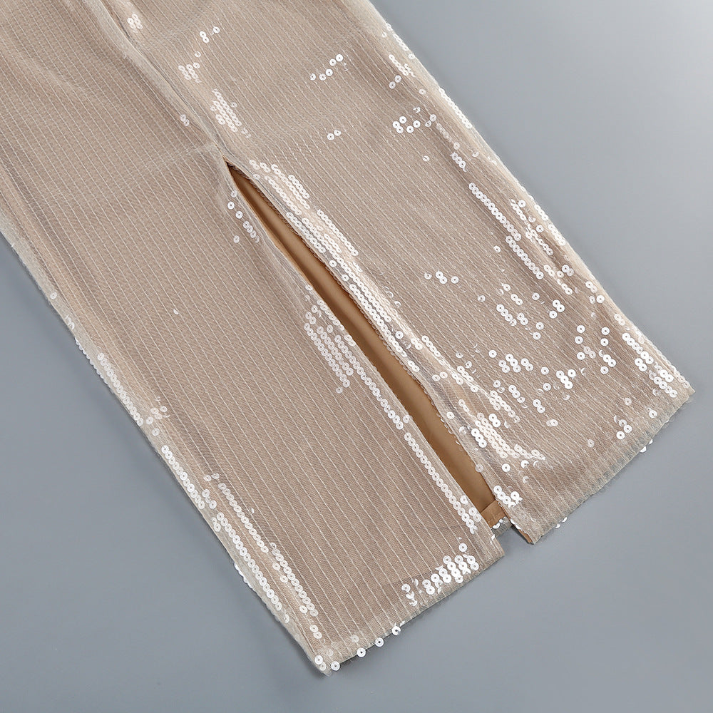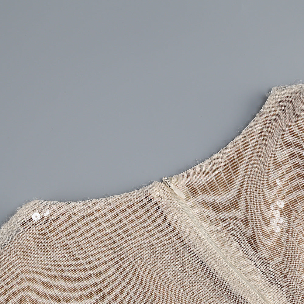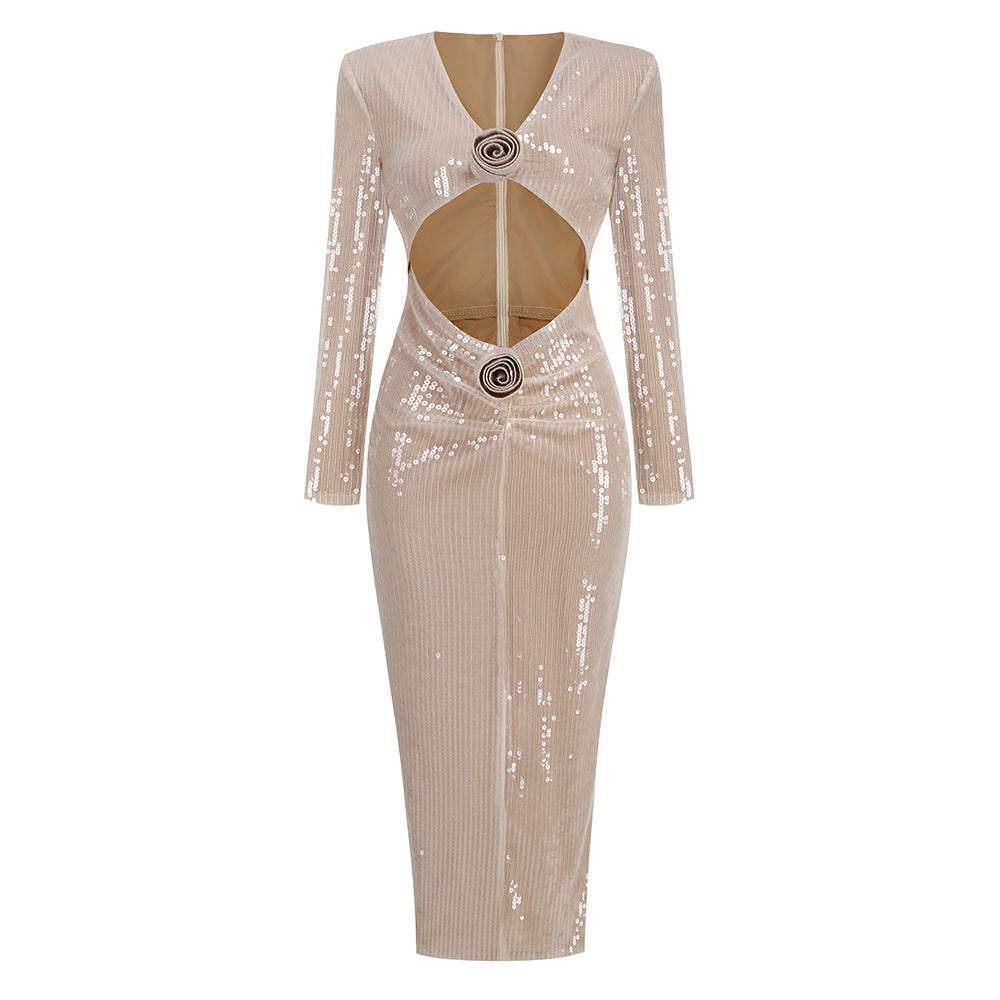 ALICIA BEIGE FLOWER SEQUINED MAXI DRESS