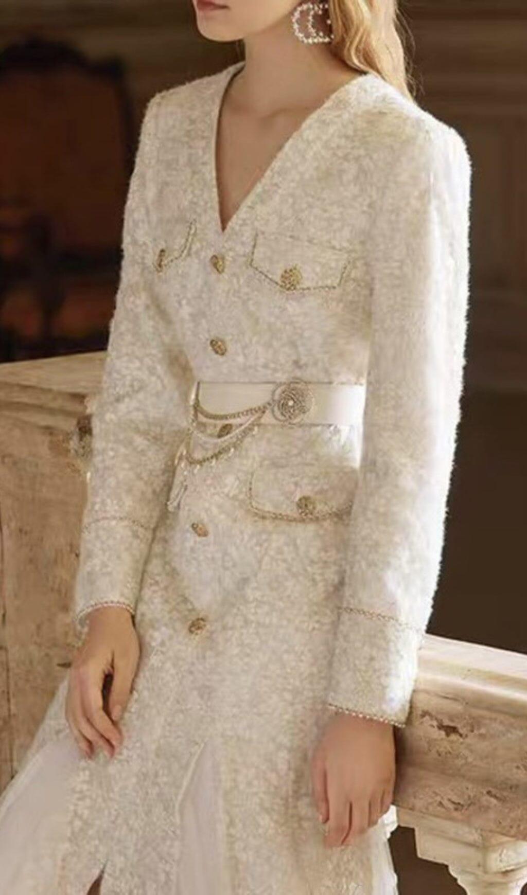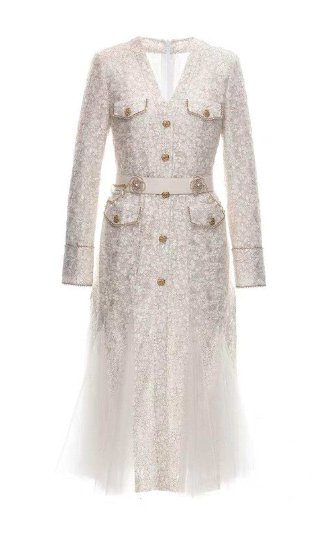 BEIGE LIGHT LUXURY MESH FISHTAIL LACE THICKENED DRESS
